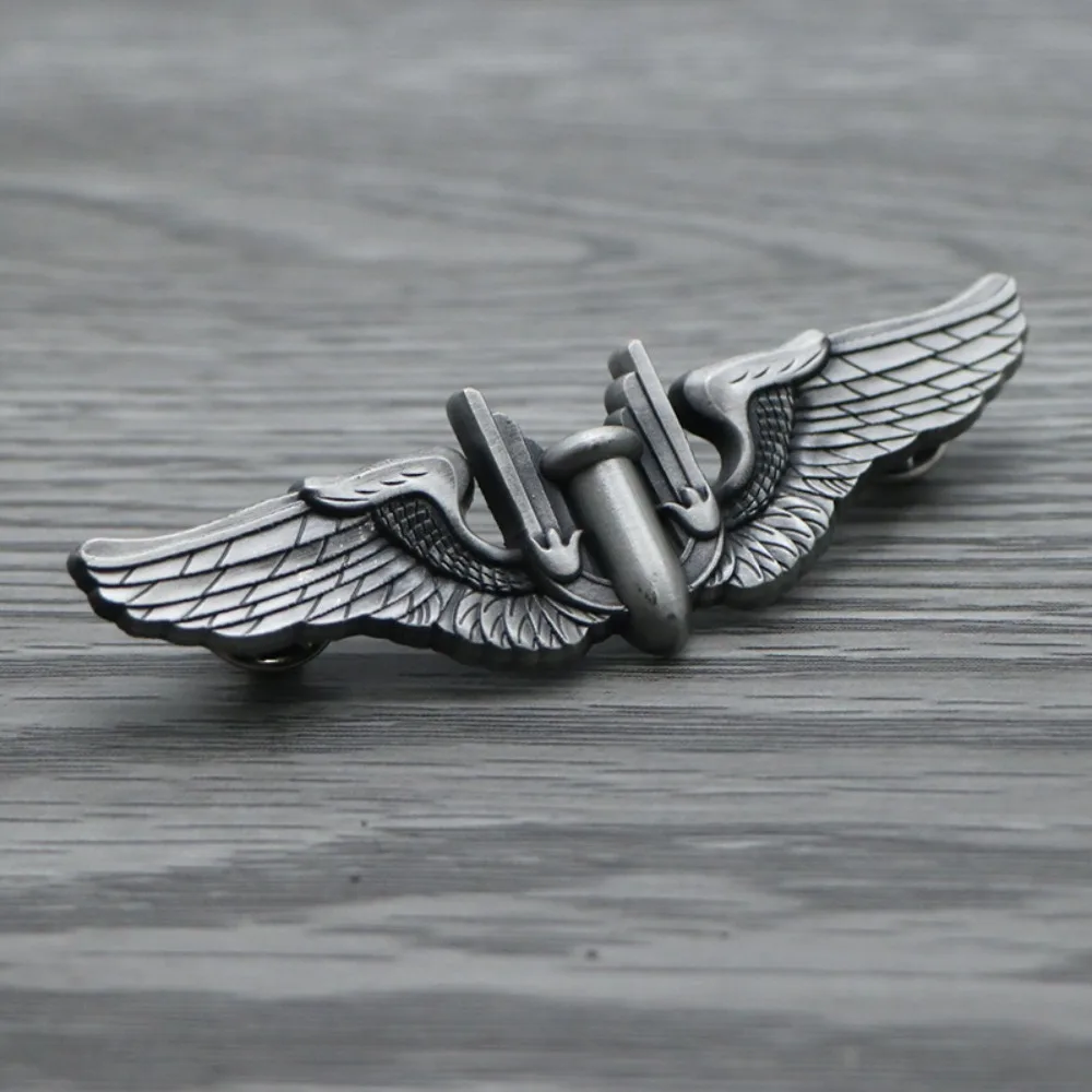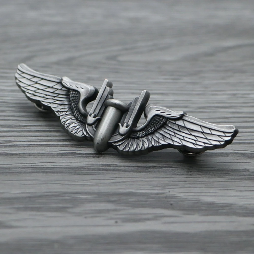 Discover the striking WW2 US Air Force Bomber Bombardier Wings Badge Metal Pin Brooch, designed from durable alloy and measuring approximately 7.5 cm in width. This elegant badge features an eye-catching metallic silver tone, showcasing a stylized bomb that embodies the spirit of bravery and patriotism. The intricately detailed wings, complete with feather-like textures, beautifully frame the bomb, making this piece not just an accessory, but a tribute to military history. Perfect for both men and women, this unisex badge can be stylishly pinned to jackets, backpacks, or hats, and serves as a unique addition to any DIY clothing project.