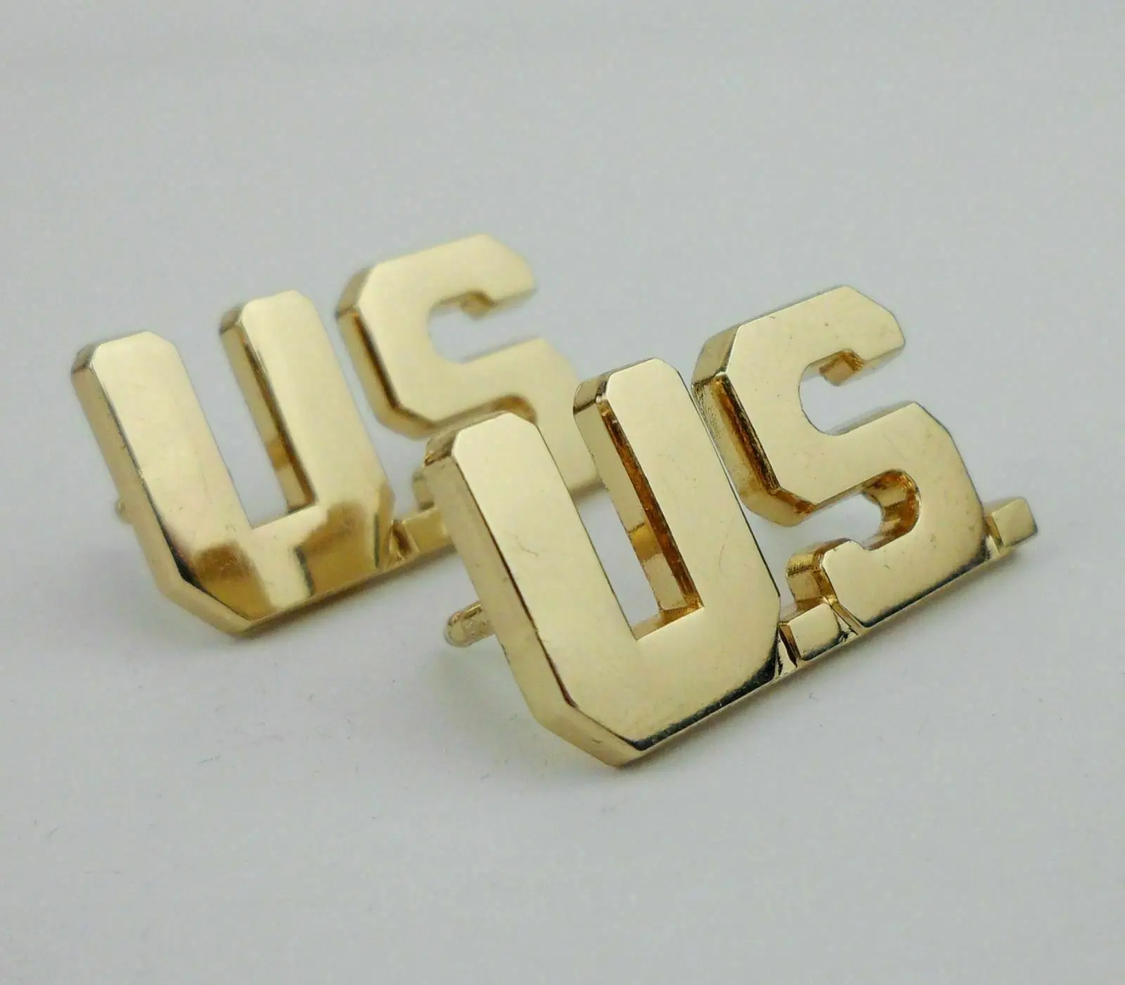 Enhance your collection with this authentic-looking pair of WW2 US Army officer collar insignia pins. Crafted with meticulous attention to detail, these gold-colored badges feature a sleek, polished surface that reflects light beautifully. Each pin measures approximately 0.4″ in width and 0.7″ in height, offering a compact yet striking appearance. The solid metallic build, complemented by the three-dimensional ‘U' shape design, evokes a vintage military style that’s both classic and refined. Perfect for collectors, reenactors, or display, these badges provide a genuine feel of history and authenticity, allowing you to beautifully showcase your appreciation for WWII military heritage. Visualize yourself wearing or displaying these insignia with pride—adding authenticity and elegance to your collection or uniform.