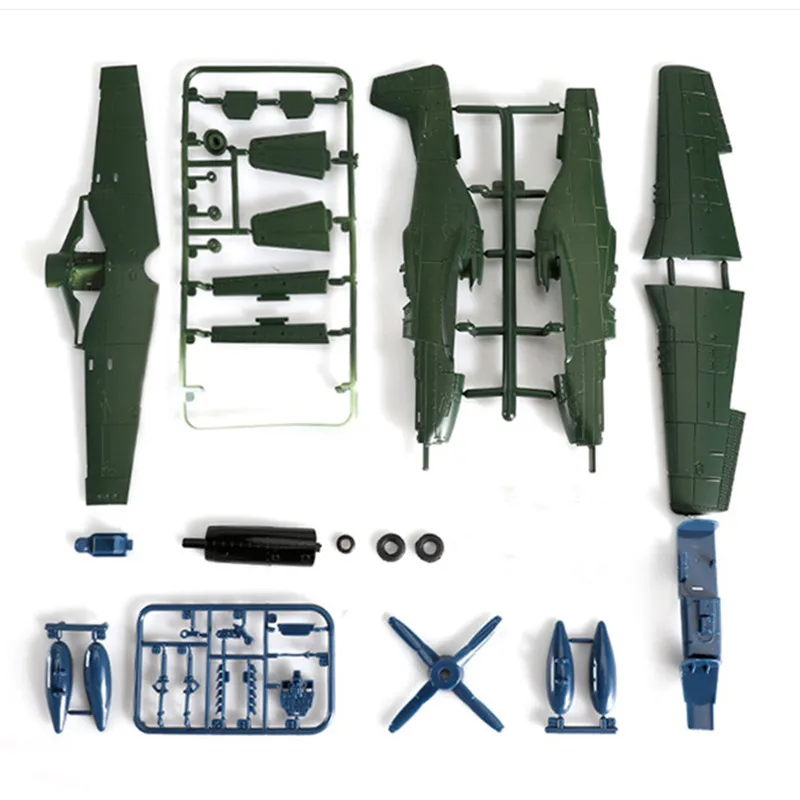 Step into the world of military aviation with this stunning assembly model kit by GSF. Carefully designed for enthusiasts and collectors alike, this 1:48 scale collection features five iconic World War II aircraft, each with unique coloring and intricate details. From the camouflage-painted fighters with bold black and white striped tails to sleek black planes adorned with white decals, these models offer a realistic glimpse into wartime aviation history. Bright blue aircraft with contrasting yellow noses and metallic invasion stripes add vibrant accents to your display. Crafted from durable plastic with 43 detailed pieces, this kit allows you to assemble historical aircraft with precision and care, creating an engaging and educational experience that combines history, craftsmanship, and pride in aviation heritage.