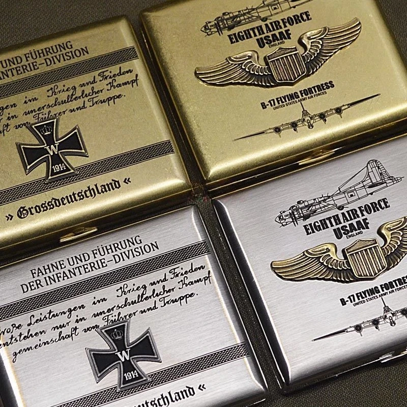 - Made from high-quality stainless steel with a durable lacquer finish for lasting beauty and resistance to wear. Designed to add vintage military charm to your cigarette box. Available in two colors: vintage copper and silvery.