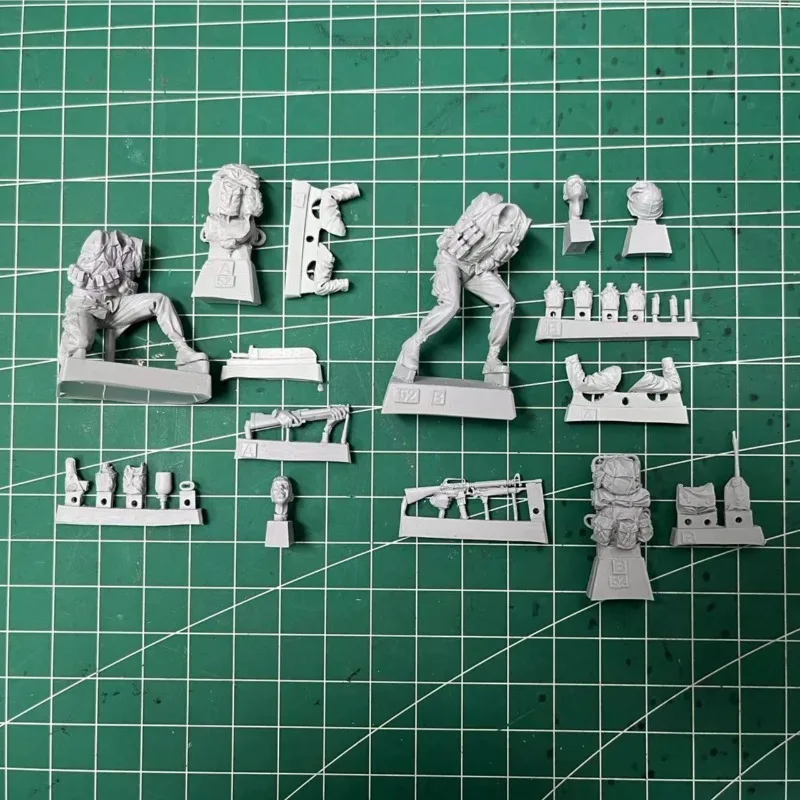 - Includes two unassembled, unpainted infantry figures featuring intricate textures on camouflage uniforms, helmets, and tactical gear for realistic modeling.