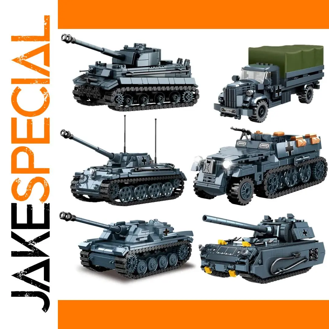 Immerse yourself in the gritty world of military history with this detailed WWII Army Tank and Armor diorama kit. Crafted from durable, eco-friendly ABS plastic, this set features realistic, rugged interlocking bricks that emulate authentic military vehicles. The collection includes a variety of vehicle types, from tanks with long, cylindrical barrels and sloped armor to compact reconnaissance vehicles with angular shapes. The monochrome palette emphasizes a practical, battle-worn look, while subtle green accents highlight military details. Perfect for DIY enthusiasts aged 14 and above, this model encourages creative assembly and provides a tactile, immersive experience. Its realistic textures and sturdy design make it a standout display piece for collectors and hobbyists alike, bringing history to life in your hands.