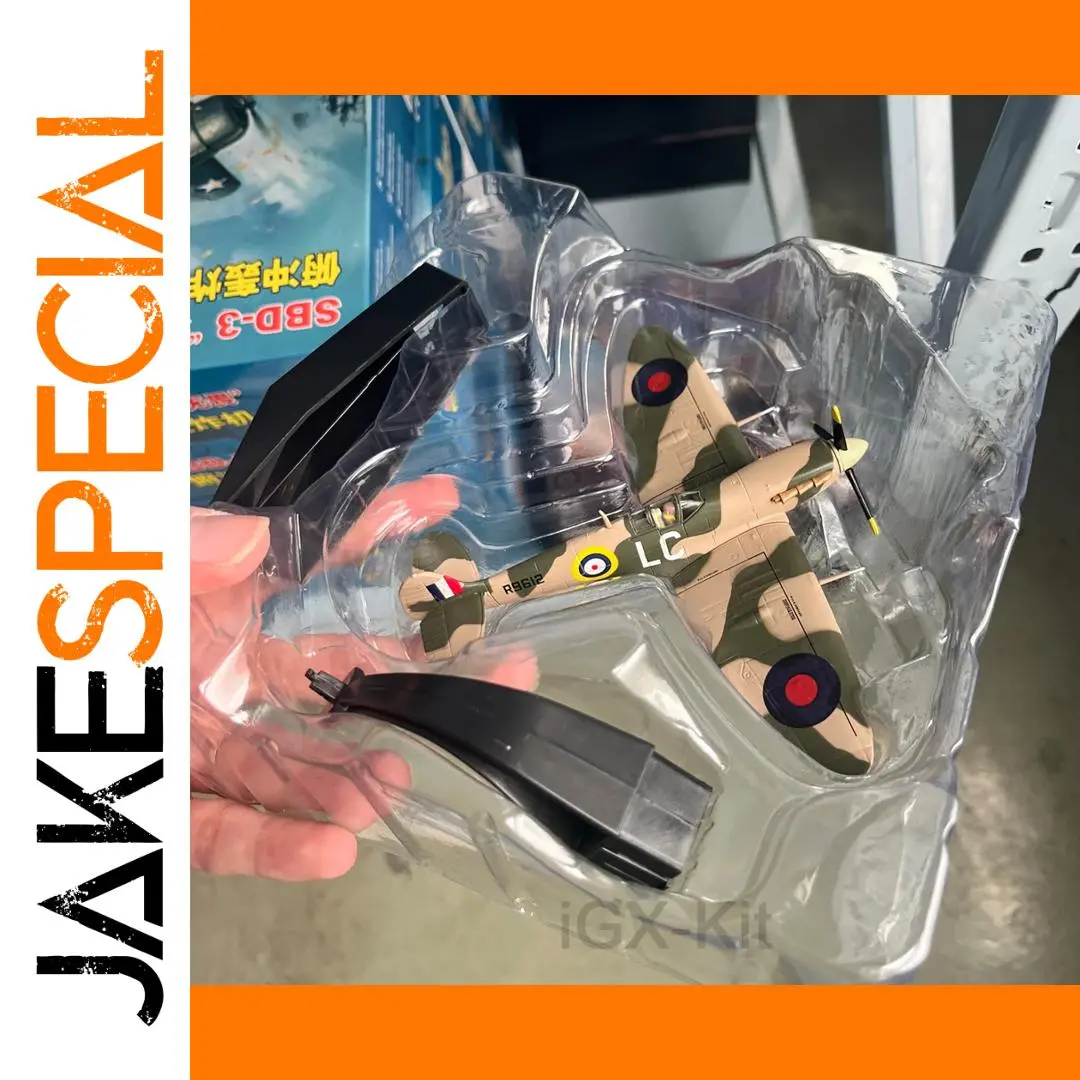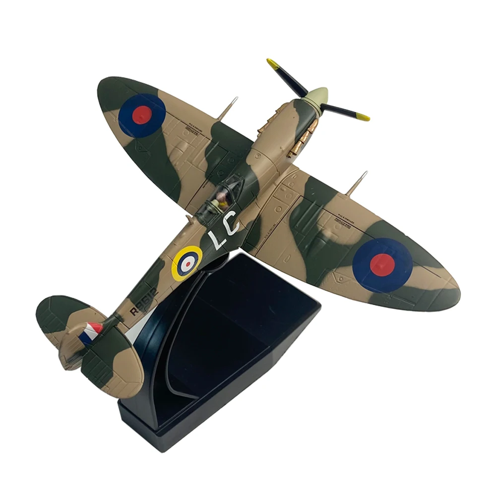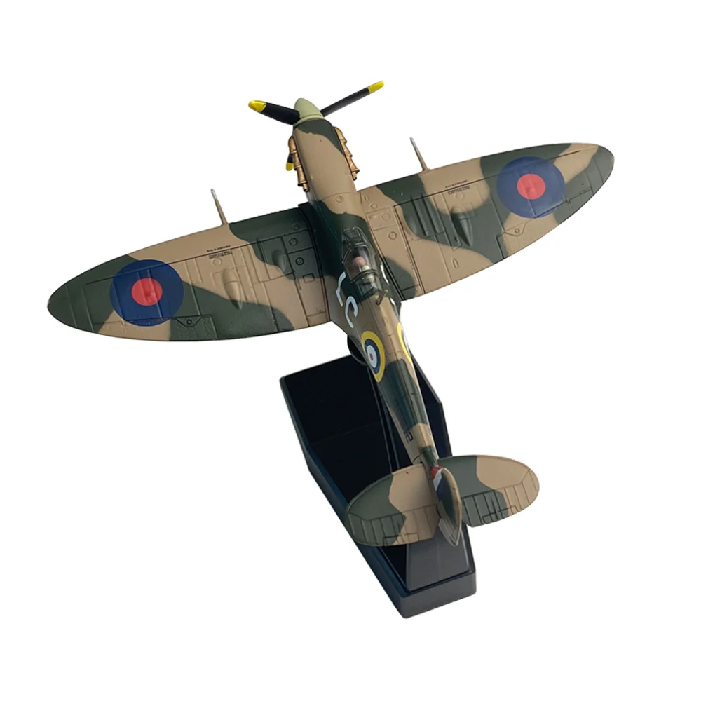 Imagine owning a stunning replica of the legendary WWII British Spitfire fighter plane, meticulously crafted to bring history to life in your collection. This 1:72 scale model, weighing approximately 220 grams, captures every detail of the iconic aircraft with authentic accuracy. The fuselage, made from high-quality alloy, features a sleek metallic finish that mimics the real plane’s polished look. Its distinctive camouflage pattern in tan and olive green enhances its tactical appearance, complemented by vibrant roundels and the serial number “R9612.” The model’s transparent cockpit canopy reveals detailed interior features, while the carefully molded panel lines add depth and realism. Perfect for display, this model combines craftsmanship and passion for aviation history, making it an exceptional addition to your collection.