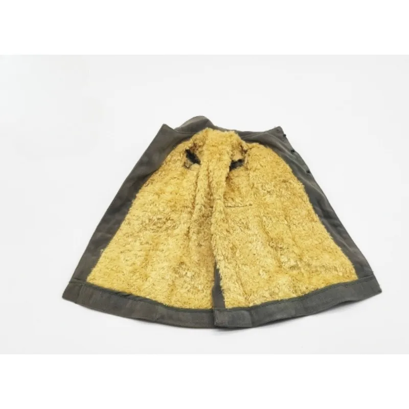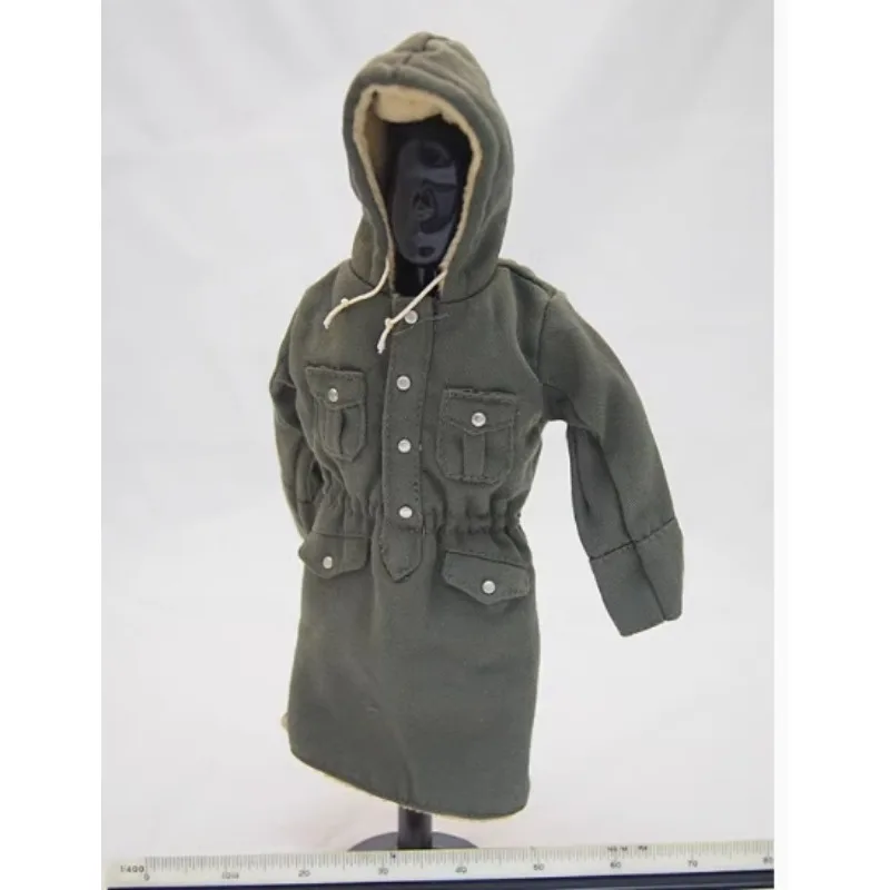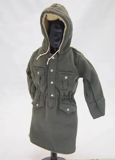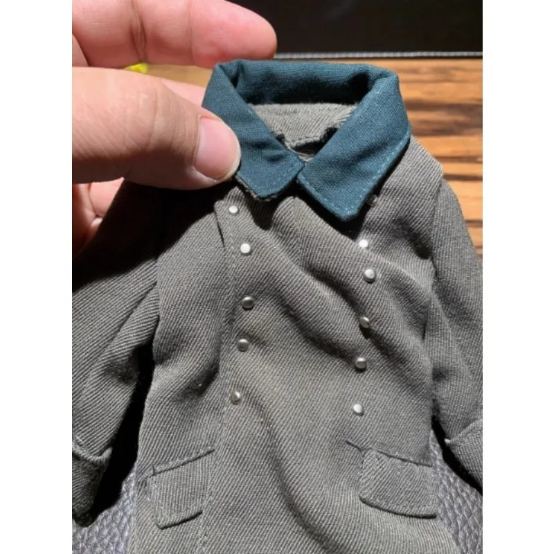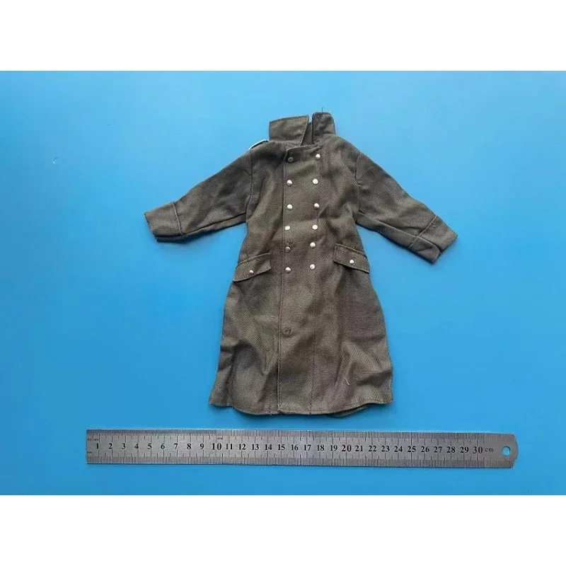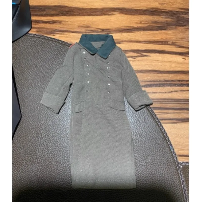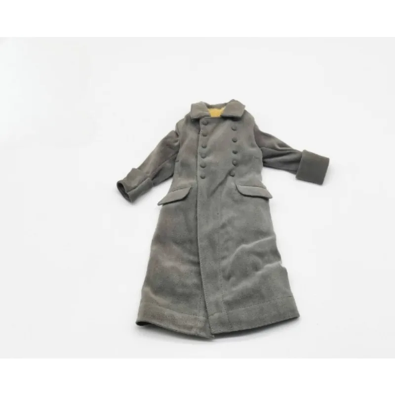 Experience the authenticity of the this 1/6 scale WWII German soldier long coat overcoat, crafted specifically for display and customization of 12-inch action figures. Made from high-quality flannel, it offers a soft, textured look reminiscent of authentic vintage military gear. The muted, light grey or greyish-brown shades emphasize a historical feel, perfect for reenactments or collection displays. Designed with attention to detail, the coat features a high collar, evenly spaced small buttons down the front, functional lapels, cuffed long sleeves, and convenient slit pockets on each side. This product transforms your action figure into a realistic soldier, enhancing the overall visual narrative and adding a touch of historical realism to your collection.