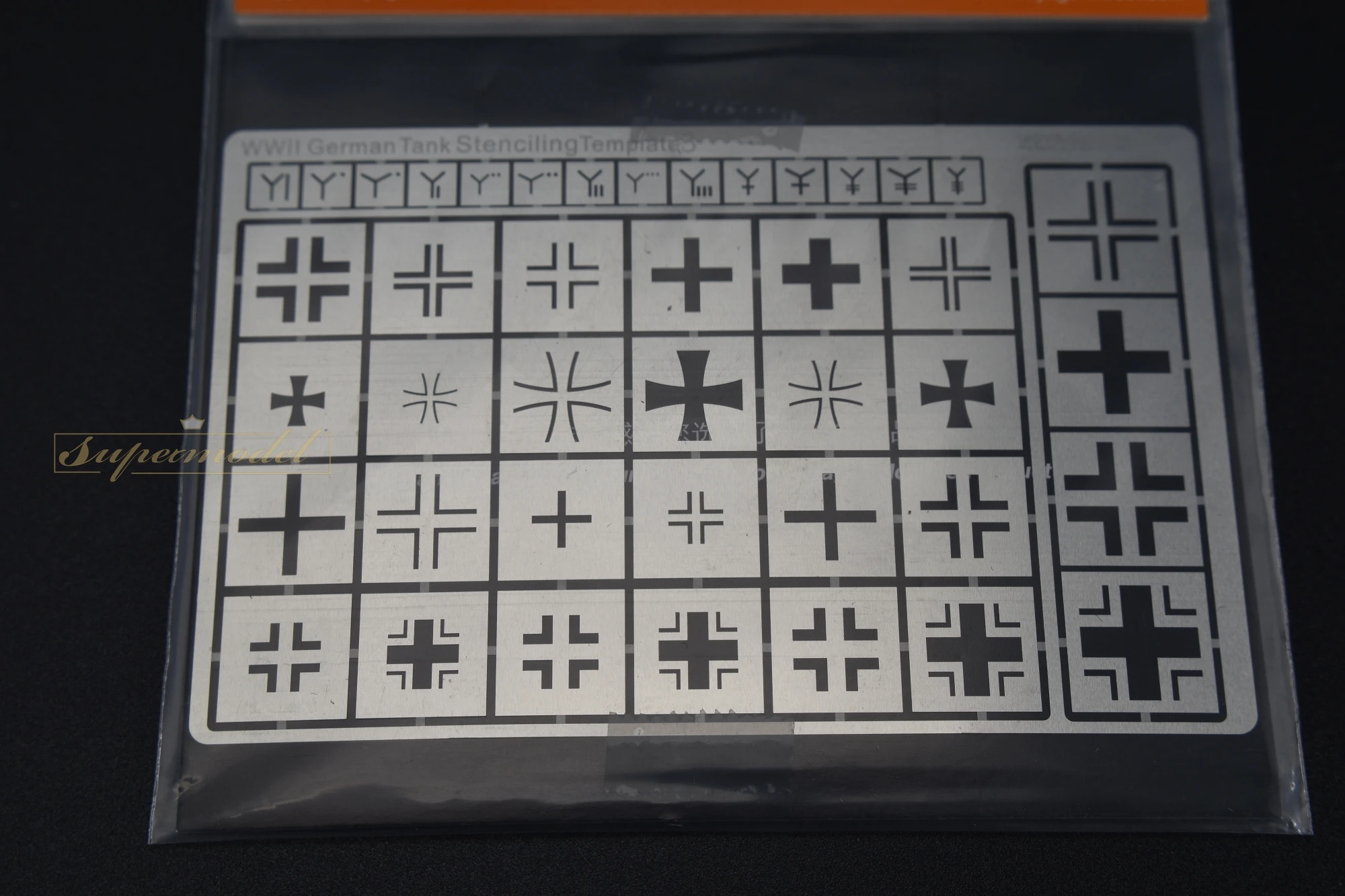 Enhance your 1:35 scale WWII German tank models with this precision-made metal stenciling template from Voyager. Designed for hobbyists who appreciate detailed military vehicle customization, this sturdy stencil features a range of black and grey Balkankreuz insignia in various sizes and styles. Its sleek metallic surface ensures clean, accurate application of intricate symbols, giving your models a realistic and authentic appearance. Whether you're aiming for historical accuracy or a highly detailed military diorama, this stencil makes the process straightforward and professional. Its durable construction guarantees long-lasting use for multiple projects. Perfect for dedicated model builders ages 18 and above, this essential tool brings precision and style to your WWII German armor detailing and customization work.
