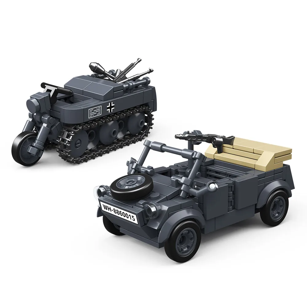 Experience the thrill of assembling your own military vehicle collection with this detailed set of building blocks. Crafted from high-quality, environment-friendly ABS plastic, each model is designed with precision and realism, capturing the essence of WW2 armored vehicles and tanks. The color palette, which includes shades of green, gray, black, and beige, adds authenticity and tactical appeal. Whether you're an avid collector or a passionate hobbyist, you'll find the models engaging and rewarding to build. With piece counts ranging from 324 to 414, you can create everything from armored cars and missile launchers to classic tanks with detailed turrets and weaponry. This set is perfect for unleashing your creativity and exploring history through hands-on assembly.