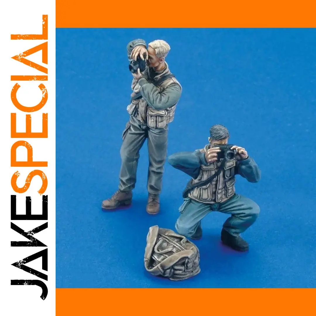 - Two unassembled, unpainted resin figures with a 1/35 scale, perfect for detailed diorama scenes depicting WWII photographers.