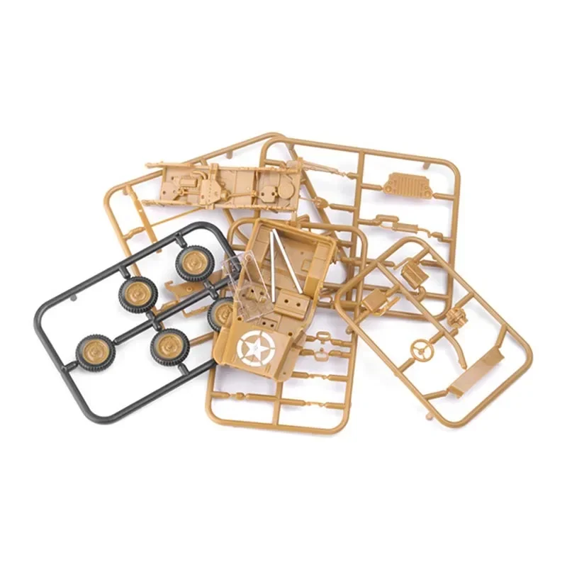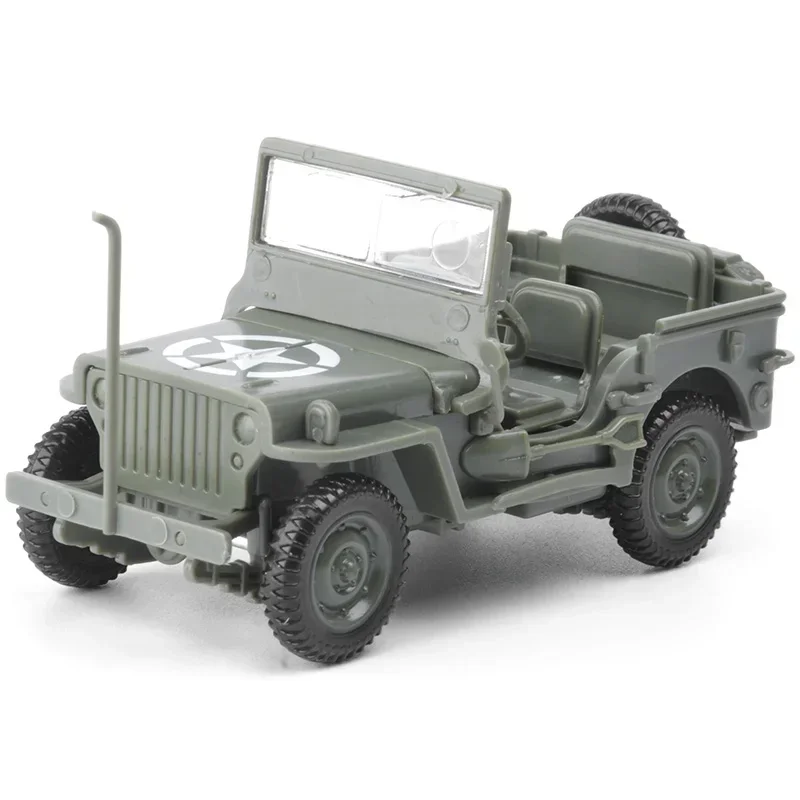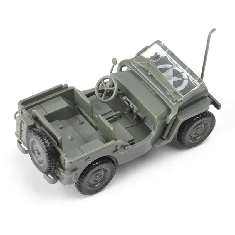 - Made from high-quality PC plastic, with accurate surface textures, panel lines, and structural details that mimic the real WWII Jeep’s utilitarian style.