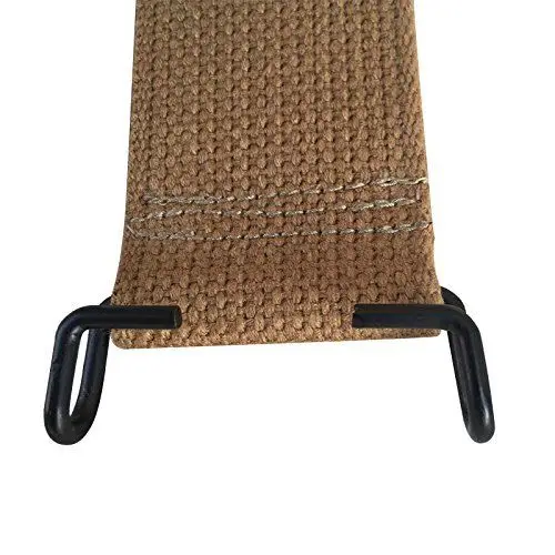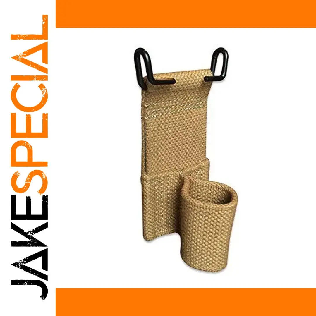 Enhance your military collection with this authentic-looking replica of a World War II US Army Military Police Datoao cover in rugged khaki. Crafted from textured, woven fabric resembling durable canvas, it features a rectangular flat section with a woven pattern for visual interest. The cover is equipped with two black metal hooks with open-loop ends at the top for easy attachment to belts or gear. A semi-enclosed, curved cylindrical pocket on the bottom right adds practicality and military style. Perfect for display or cosplay, this item exudes practical durability, rugged authenticity, and classic military appeal, bringing a piece of history to your collection.