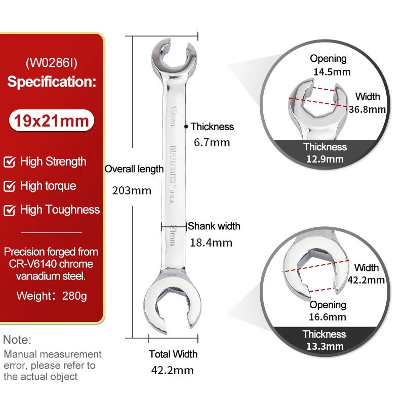 - Precision forged for consistent size accuracy and reliable performance in tightening or loosening flare nuts.