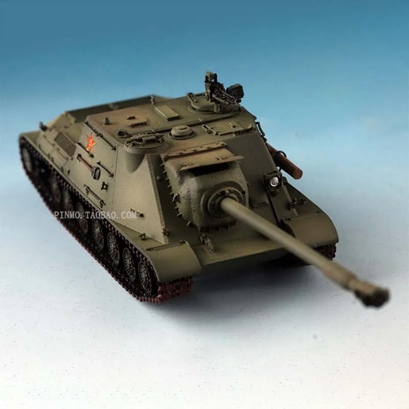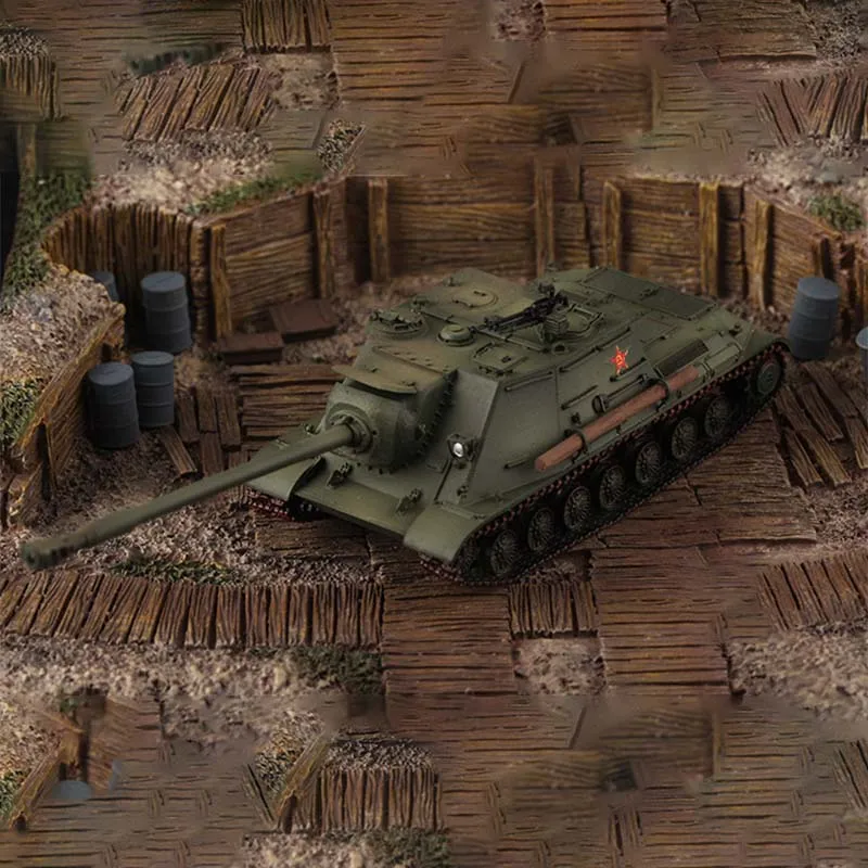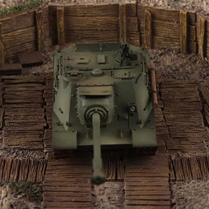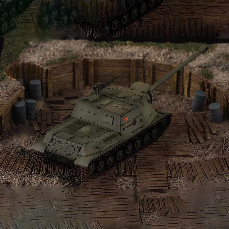 Experience the realism and craftsmanship of this 1/72 scale resin model of the Chinese WZ111G heavy tank. Designed for collectors and enthusiasts, it offers rich, intricate details that capture the rugged military essence. The matte, olive-green finish highlights its camouflaged look, while subtle surface textures enhance its authenticity. The turret features a large, detailed barrel with ridges and panel lines, complemented by tiny components such as hatches and sensors. The finely crafted tracks, showing individual links and a reddish tread, emphasize realism. Its compact size makes it perfect for display on shelves or in cabinets. This model is fragile, requiring careful handling, and some parts may need gluing if they come loose. It is a must-have for model collectors seeking a highly detailed, authentic piece.