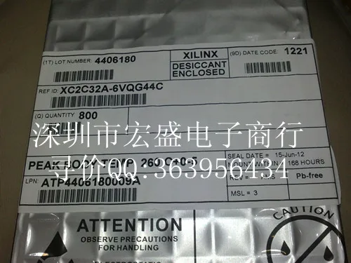 - White printed text with clear “XILINX” branding, model number “XC2C32A–6VQG44C,” and additional batch codes for easy identification.