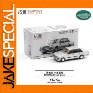 The Toy Car Xcartoys Crown Gen.7 is a meticulously crafted 1:64 scale model that features a stunning metallic silver finish. Made with a combination of metal and plastic parts, this model captures realistic details such as headlights, a detailed grille that proudly displays the word “CROWN,” and intricately molded windows. The wheels have a functional appearance, enhancing the overall aesthetic appeal. Available in two distinct color options: Y51-01 and Y51-03, this non-electrical collectible is perfect for adult enthusiasts and makes a striking addition to any display. Elevate your collection with this sophisticated model that showcases exceptional craftsmanship.