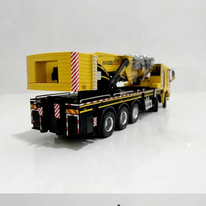 Experience the detailed craftsmanship of this XCMG SQZ4500 1:35 scale heavy-duty folding arm crane model. Made from durable alloy, it captures every structural detail with precision. The vibrant yellow and crisp white with blue accents highlight its robust and functional design, perfectly replicating a real crane's aesthetic. Its smooth surface, finely crafted joints, and articulated structural parts emphasize realism, making it an ideal display piece. Whether you want to enhance your collection or gift a truly authentic miniature replica, this model stands out with its intricate features and lifelike appearance. Its compact size fits neatly on shelves or desks, bringing a touch of industrial sophistication to any space.