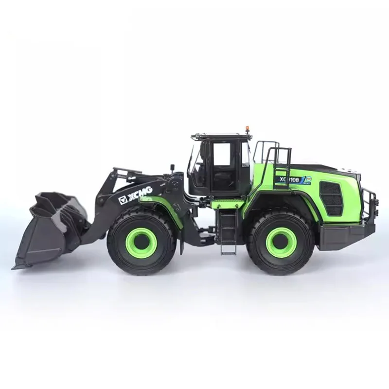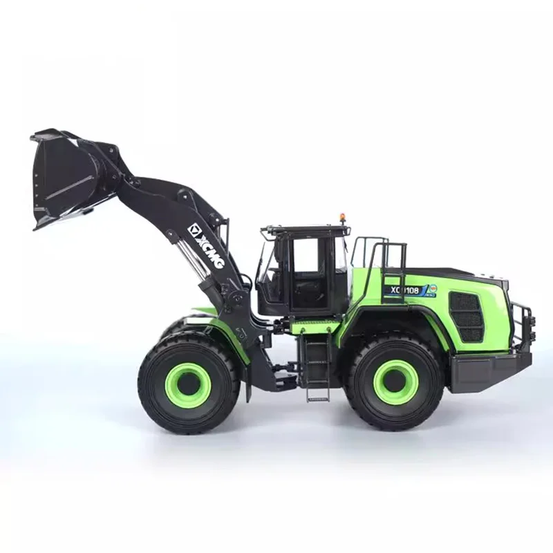 Step into the world of construction machinery with this lifelike 1:35 scale diecast model of the XCMG XC9108-EV wheel loader. Measuring approximately 27cm long, 10cm wide, and 11cm high, this stunning replica showcases vibrant lime green bodywork contrasted by black details, creating a modern and eye-catching aesthetic. Its alloy and ABS construction offer a realistic metallic sheen, emphasizing durability and craftsmanship. The black loader arm and bucket are meticulously designed, featuring detailed edges that mirror real cutting surfaces. Large textured tires with rugged tread patterns and lime green rims with bolt-like centers enhance its authenticity. With safety railings, textured steps, and crisp decals, this model beautifully captures the essence of industrial strength and precision.