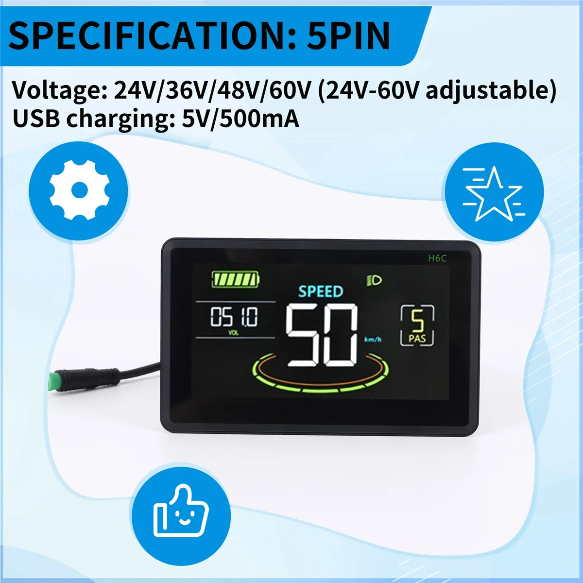 Transform your riding experience with the XFDZ H6C Electric Bike LCD Display Meter, designed for smooth integration on various handlebars. This compact display features a sleek, high-definition color screen that provides vital information with clarity. Imagine glancing at your bike and effortlessly reading battery indicators, speed metrics, and mileage at a glance. The optional USB connectivity adds convenience, allowing you to charge your devices while on the go. Tailored for electric scooters and compatible with handlebar sizes from 22.2mm to 31.8mm, this display ensures your ride is fully equipped for all your cycling adventures.