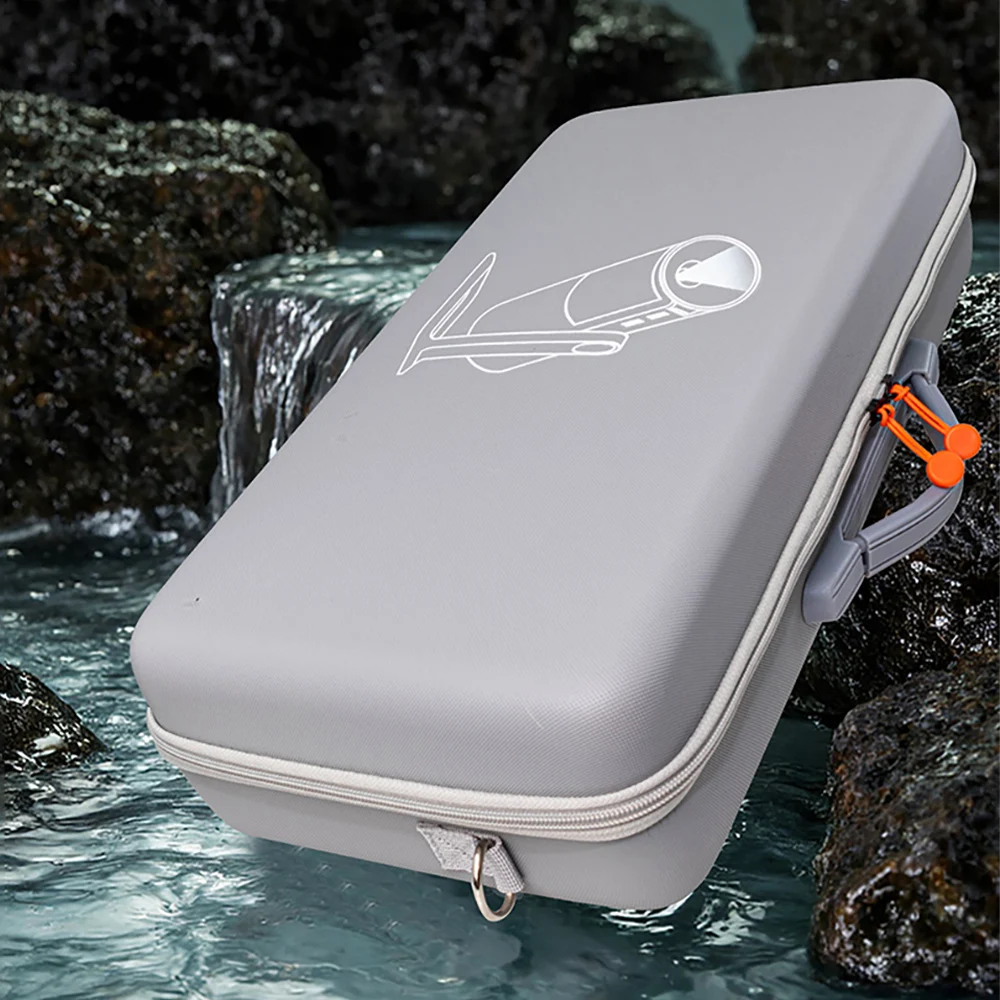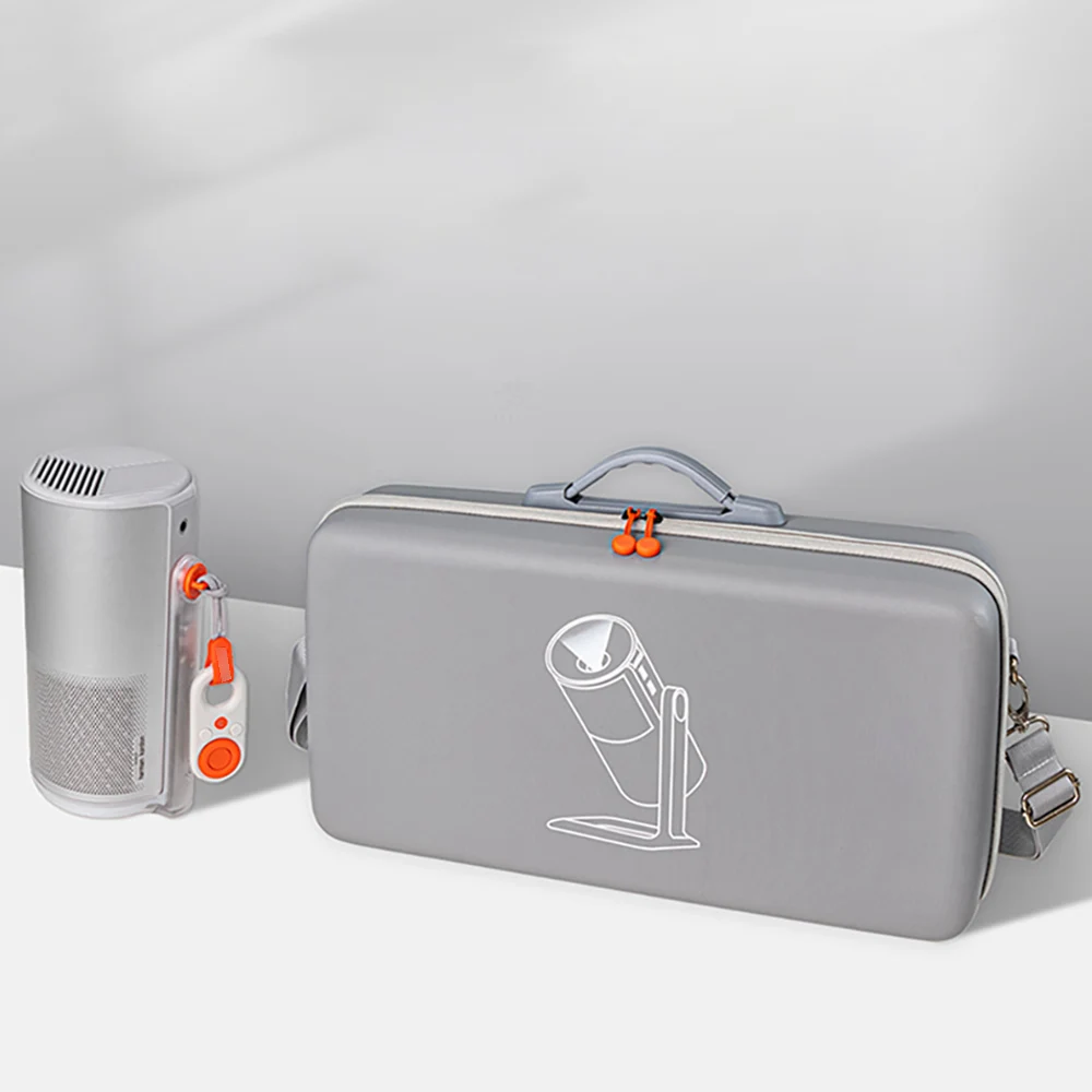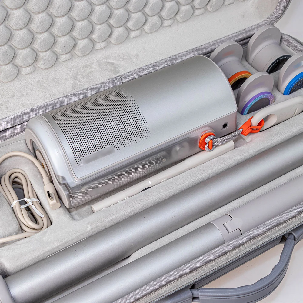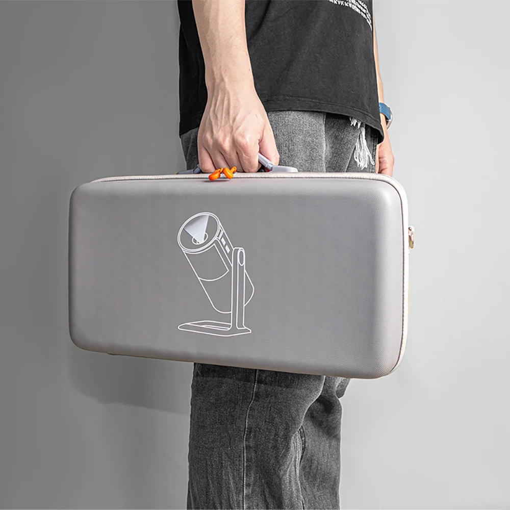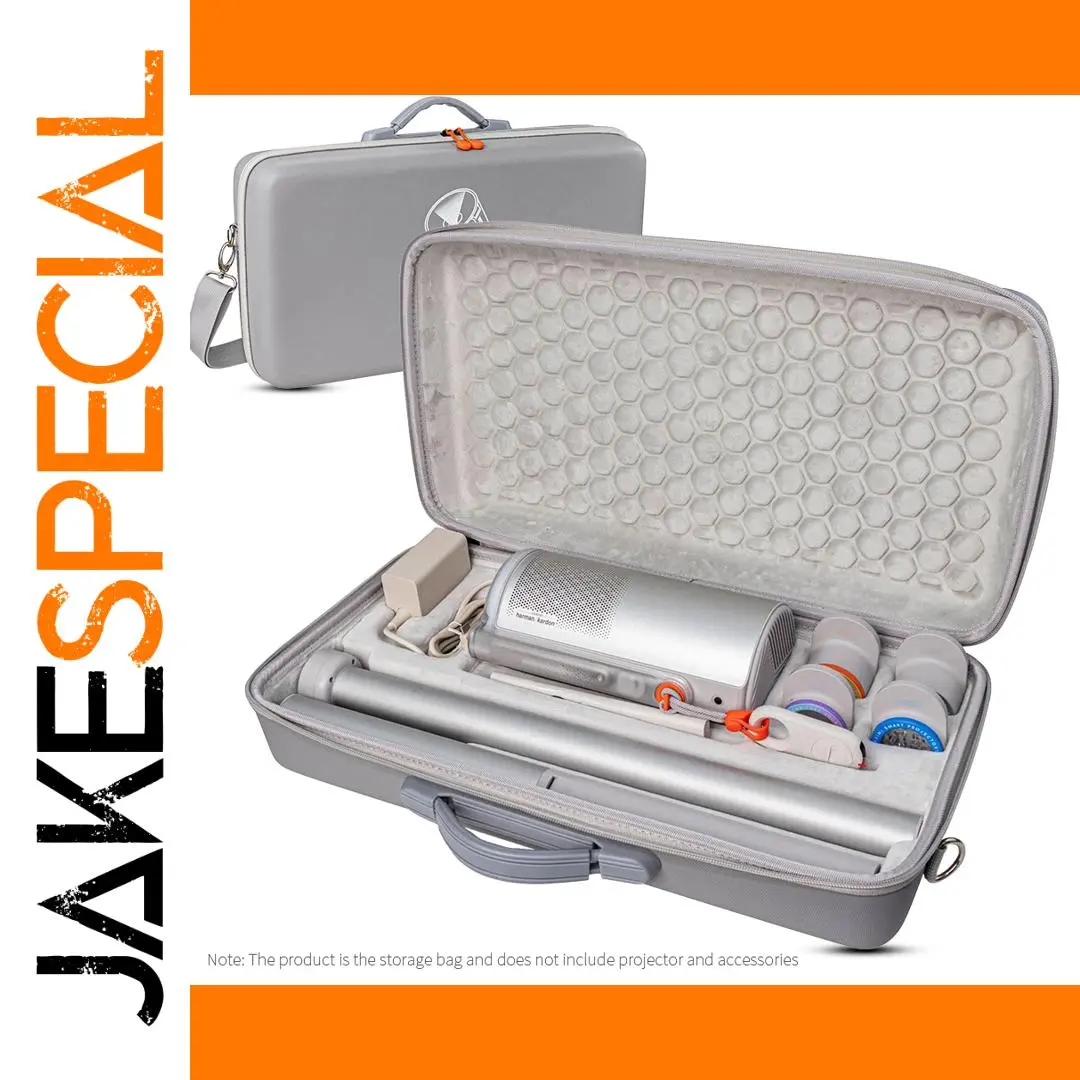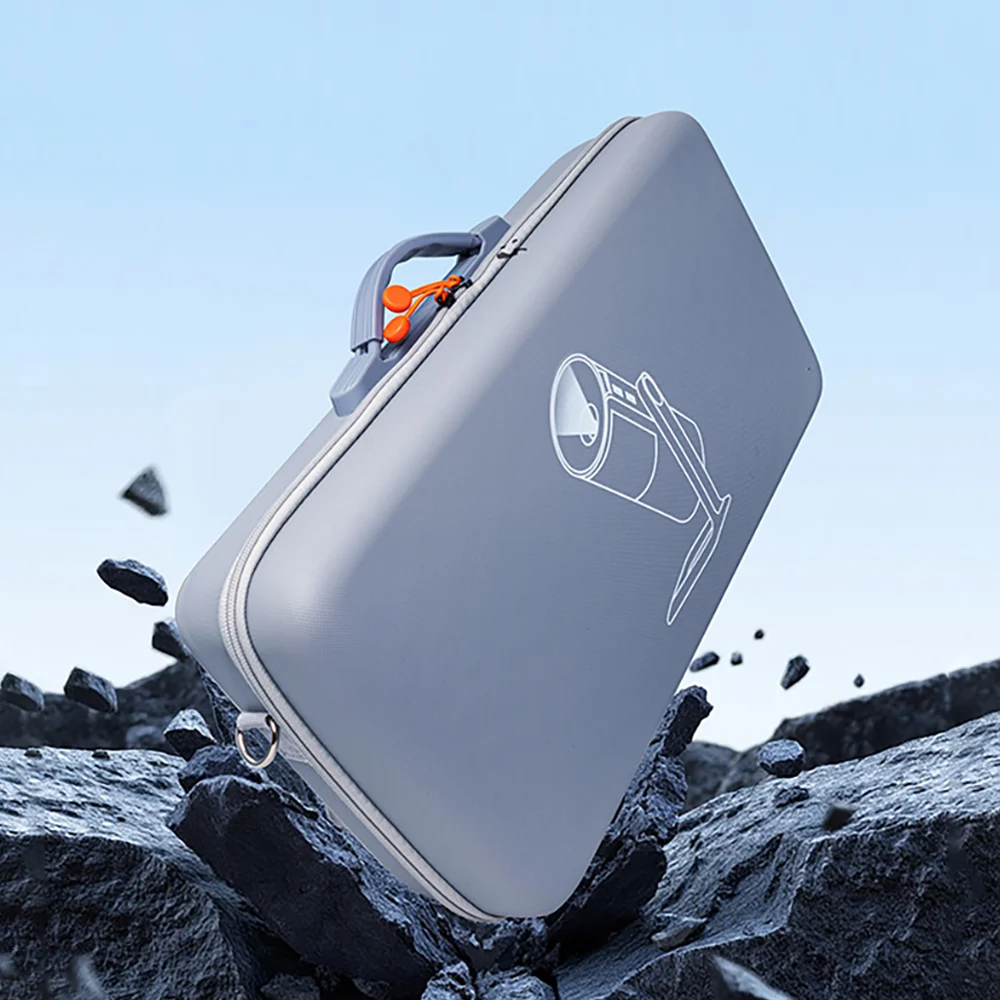 Introducing the perfect storage solution for your XGIMI Play6 Projector. This gray hard EVA storage case is crafted from quality compression-resistant fabric, ensuring durability and wear resistance. With internal dimensions of 46.5 cm x 25.9 cm x 11.2 cm, it securely accommodates the projector, accessories, and a battery holder. The sleek and minimalistic design features a sturdy handle and an additional carrying strap for easy transport. Inside, a soft, padded lining with a unique honeycomb pattern protects your device, while designated compartments keep everything organized. Enjoy practicality and style as you travel with your XGIMI Play6 Projector.