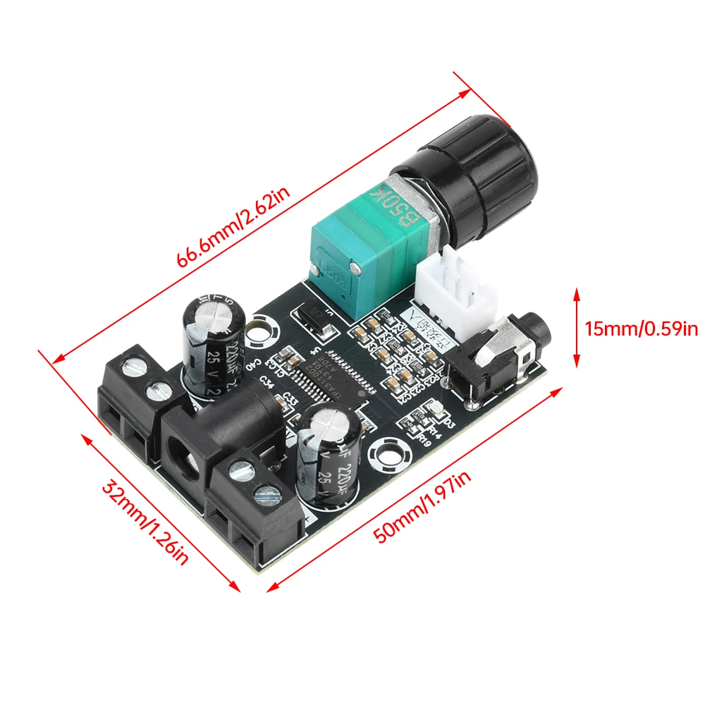 - Compact size of 50mm by 32mm, with screw-terminal blocks for easy and secure connection of external speakers or other components, facilitating seamless integration.