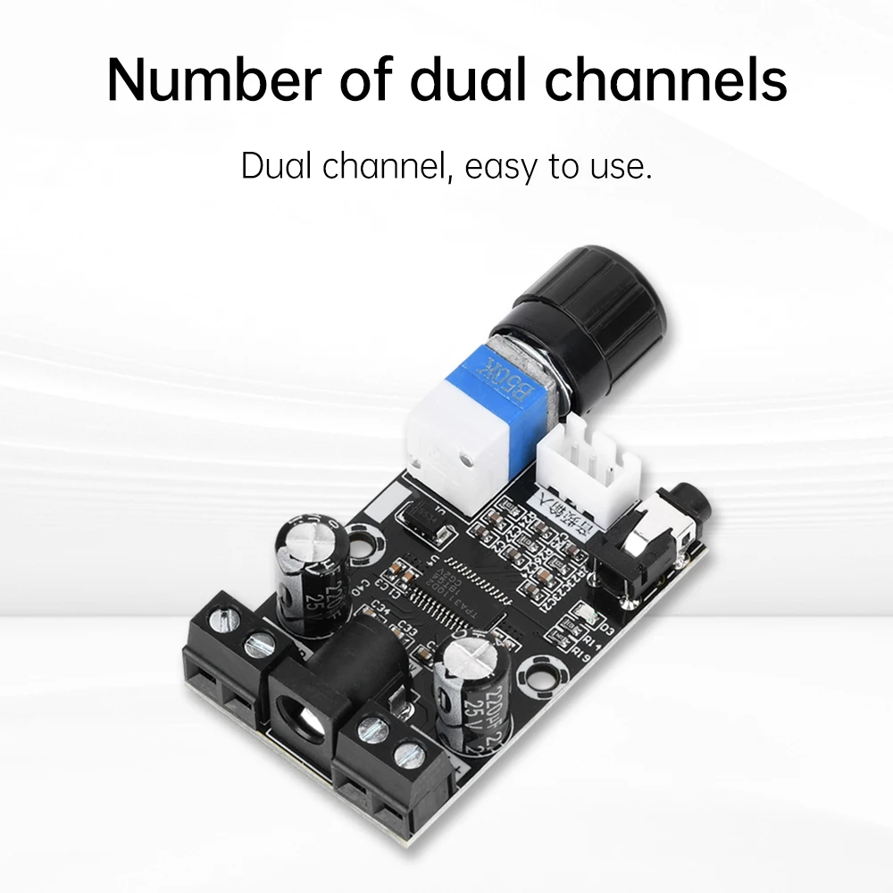 - Dual channels providing 30W output power each at 24V, or 15W per channel at 12V, capable of powering small speakers or audio devices with clarity and force.