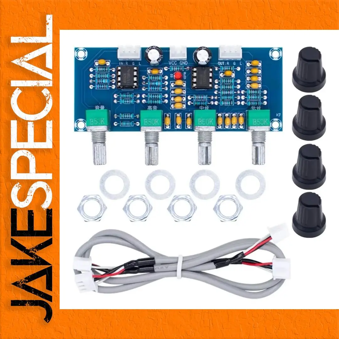 The XH-A901 Digital Amplifier Preamp Board is designed for audio enthusiasts, featuring a supply voltage of DC 12V-24V and dual-channel output. Measuring 96mm x 39mm x 16mm and weighing 52 grams, it incorporates a dual-core NE5532 imported chip for effective audio amplification. The board includes three vertical potentiometers for treble and bass adjustment, clear labeling for input and output connections, and an installation hole distance of 89.3mm x 32.3mm. This compact module enhances your audio system, providing you with an exceptional listening experience through precise control over sound quality and performance.