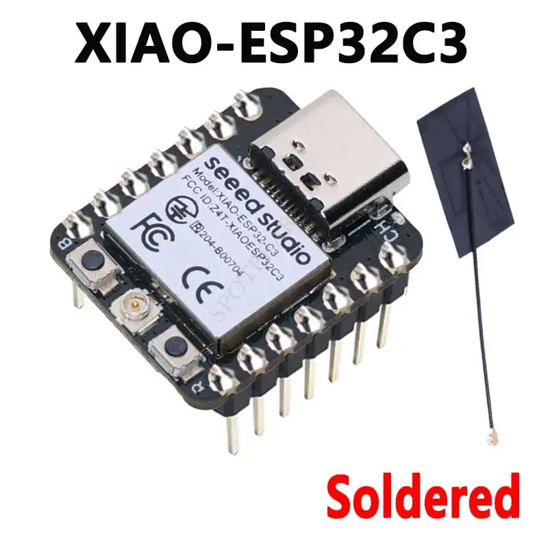- Features the highly integrated ESP32-C3 SoC with a 32-bit RISC-V processor, running up to 160 MHz for fast and efficient performance in compact applications.