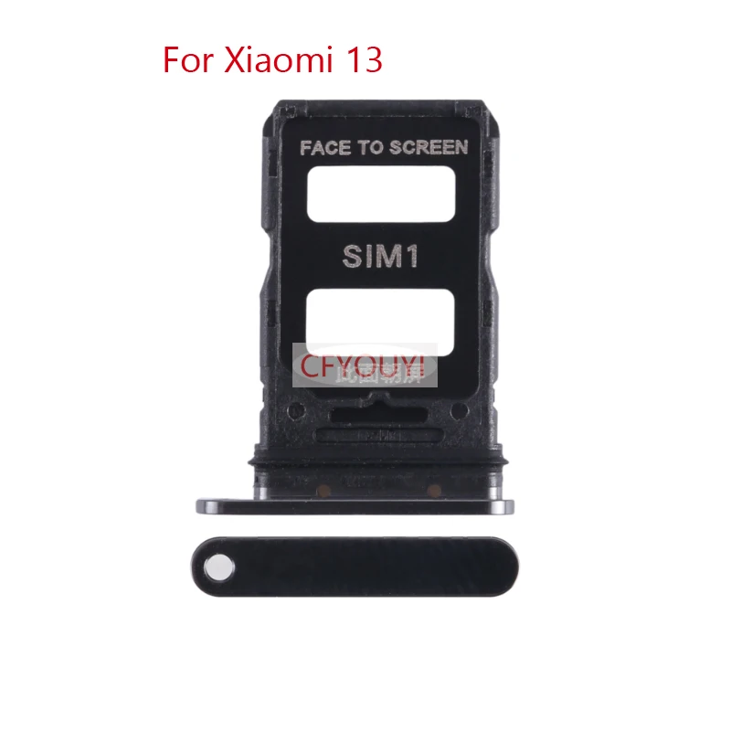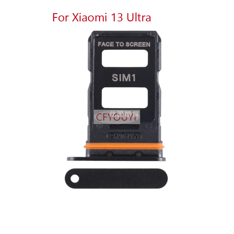 Experience seamless connectivity with this specially designed SIM and micro SD card tray made for Xiaomi 13, 13 Ultra, and 13T smartphones. Crafted from durable black plastic, this tray features a sleek, minimalist rectangular shape with a matte finish, enhancing the aesthetic of your device. The white printed labels “FACE TO SCREEN” and “SIM1” provide clarity for installation, while subtle ridges and indentations ensure an easy, secure fit. Included with the tray is a slim, elongated ejector tool, making device access straightforward. This accessory is ideal for those seeking a reliable, long-lasting component that maintains your phone’s elegant design while supporting optimal functionality for your data and network needs.