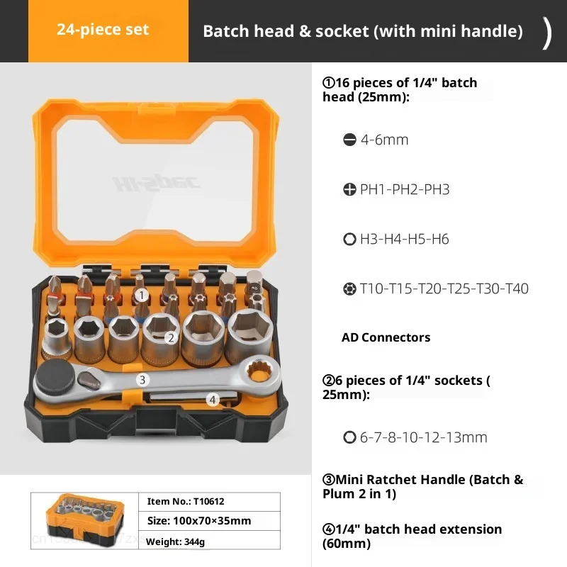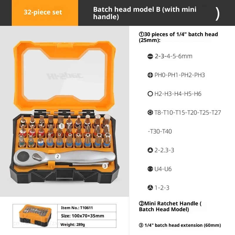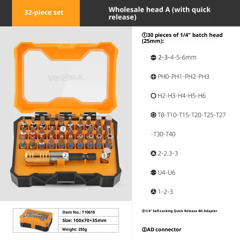 Imagine effortlessly handling your household repairs or woodworking projects with this stylish, versatile screwdriver set. Featuring a distinctive plum-shaped handle with a textured rice grain pattern, it offers an ergonomic grip that feels natural in your hand. The sleek metallic finish adds a modern touch, while the transparent orange plastic case ensures easy access and organized storage. Whether you're tackling small fixes or DIY tasks, this set provides all the tools you need in a durable and portable package. Choose from configurations with 24 or 32 pieces, each including high-quality steel bits color-coded for quick identification. Make your toolkit complete today and enjoy the confidence of professional-grade tools at your fingertips.
