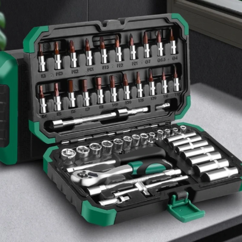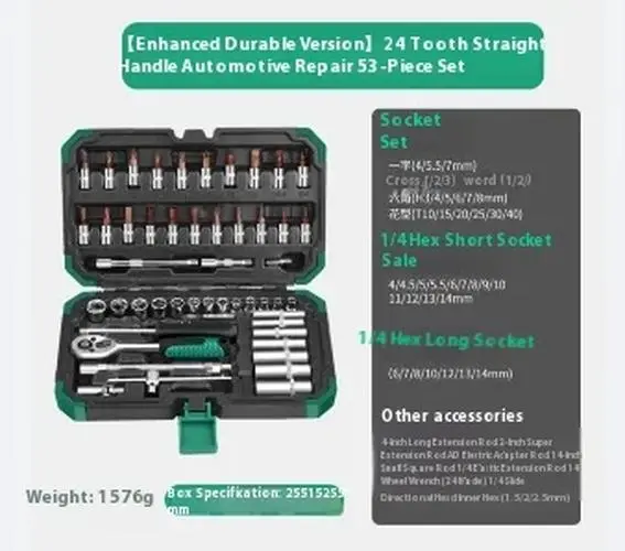 Experience efficient and precise repairs with the Xiaomi BAOLIAN Ratchet Wrench Set, crafted from durable chrome-vanadium steel and available in two gear configurations: 24 gears and 72 gears. This multi-functional auto repair tool includes interchangeable socket heads with sizes from 10 to 34, extension bars, adapters, and a comfortable ergonomic handle, all organized in a sturdy toolbox with black body and vibrant green accents. Designed for durability and high performance, this set is ideal for vehicle maintenance and quick repairs, combining professional quality with a sleek, modern aesthetic. Perfect for ensuring your repair tasks are done accurately and confidently.