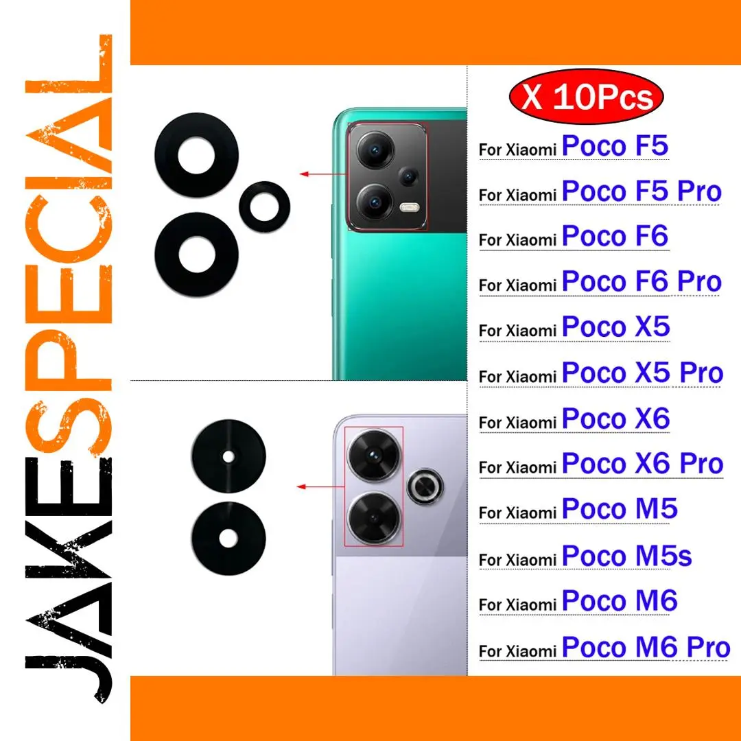 Enhance your Xiaomi device with this set of 10 high-quality glass rear camera lens covers, specifically designed for models including Poco F5, F6, M5, M5s, M6, X5, X6, and their Pro 4G and 5G variants. Crafted from premium glass with an adhesive backing, these covers ensure a precise fit and easy installation, providing reliable protection for your camera lenses. The sleek, minimalist design complements the modern aesthetic of your smartphone, while the durable material maintains clarity and elegance. Suitable for models like Poco M5, M5s, F5, F5 Pro, F6, F6 Pro, M6 5G, M6 Pro 4G, X5, X5 Pro 5G, X6, and X6 Pro, this pack is your perfect solution for maintaining a polished, functional look.