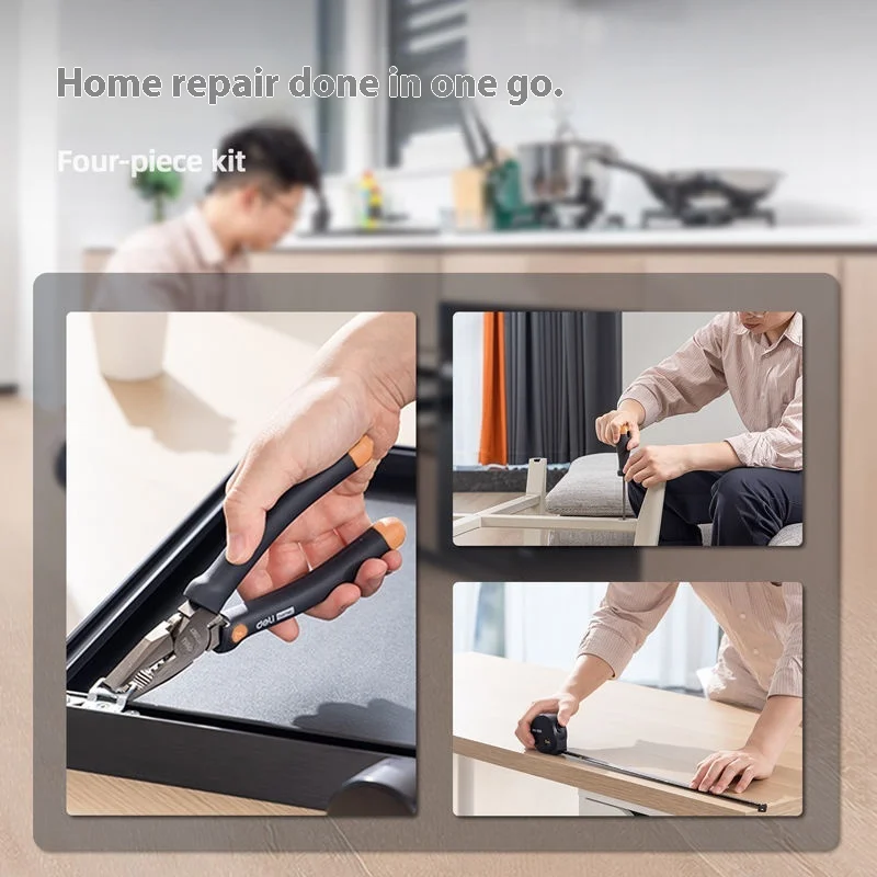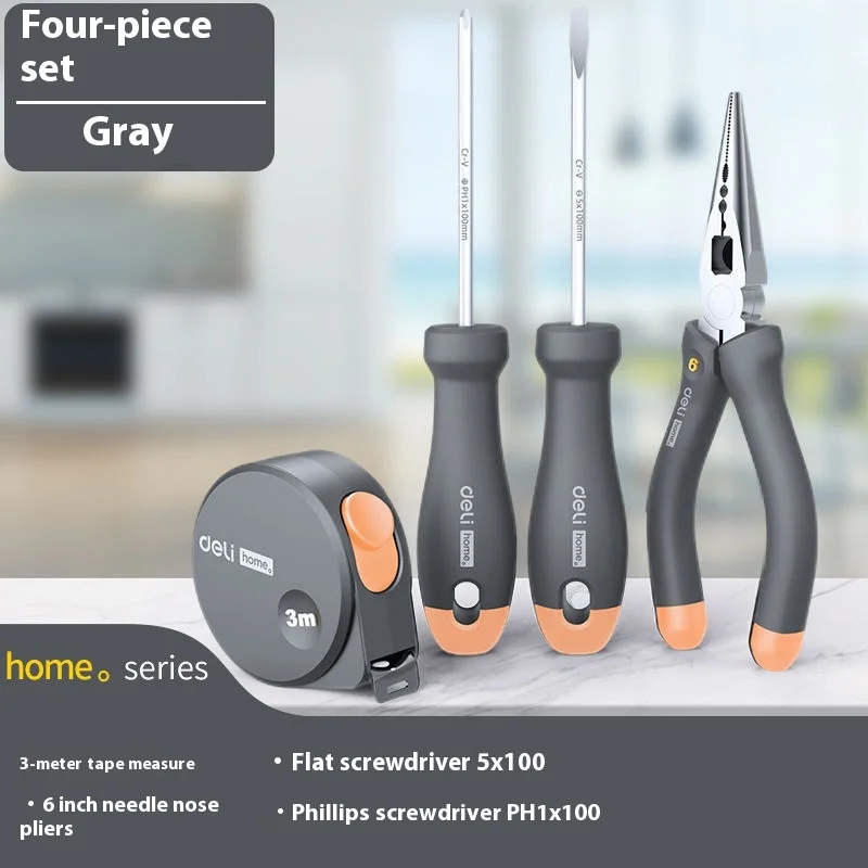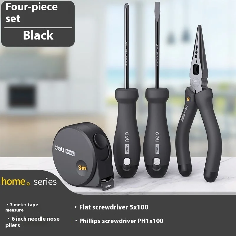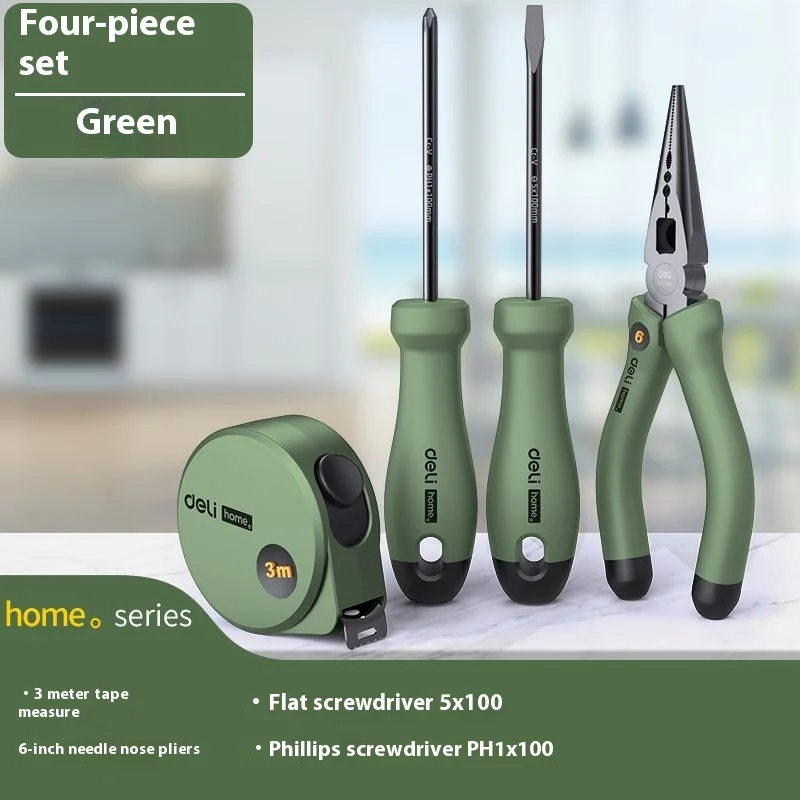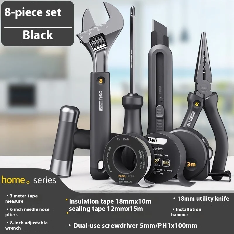 Experience the Xiaomi Deli Household Tool Set, a comprehensive collection designed to simplify your household repairs. This set includes a durable wrench set, versatile hardware repair tools, and ergonomic screwdrivers, all housed in a practical home box. Crafted from chrome-vanadium steel for long-lasting strength, the tools feature precision screw heads with size 1 and are available in sleek black, green, or grey in variations of 4, 6, or 8 pieces. With a modern, professional aesthetic characterized by a matte finish and smooth surfaces, this eco-friendly toolset ensures reliable performance and style. Perfect for maintaining and repairing your home with confidence.