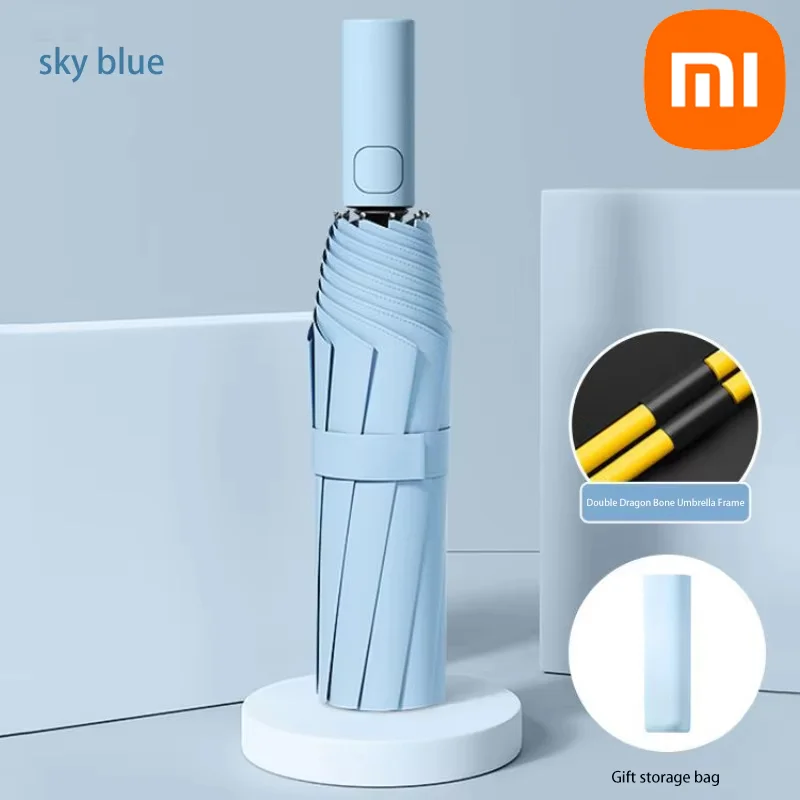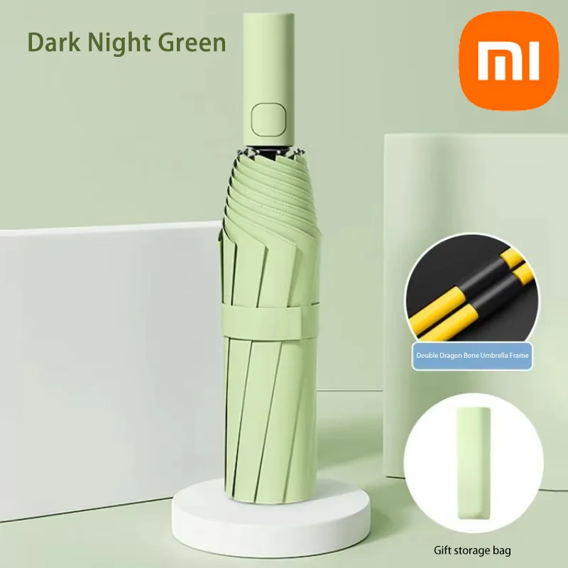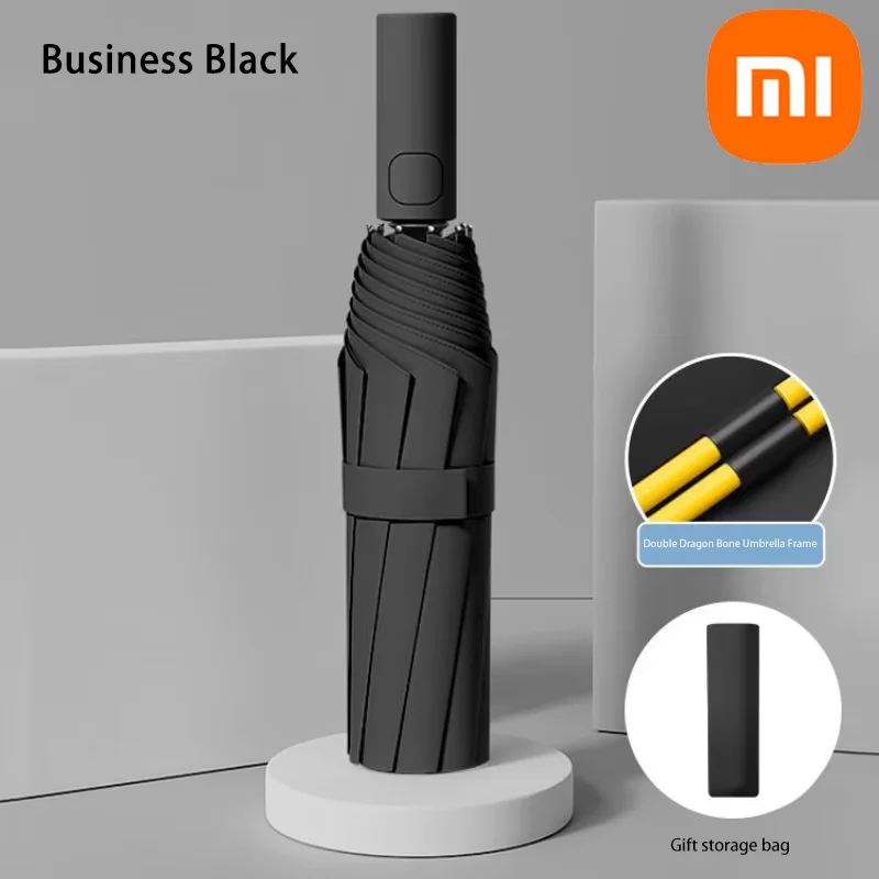 Experience the ultimate convenience with the Xiaomi 24 Bone Fully Automatic Double Bone Folding Umbrella. Designed for adults, this versatile umbrella protects you from both rain and harmful UV rays, ensuring you stay comfortable in any weather. Its fully automated mechanism allows you to open and close it effortlessly with just a click. Picture yourself strolling confidently through sudden downpours or under the bright sun, feeling fully shielded. The compact three-fold design makes it easy to carry, while the stylish black glue coating enhances both its durability and elegance. Embrace the ease and reliability of this umbrella at every turn.
