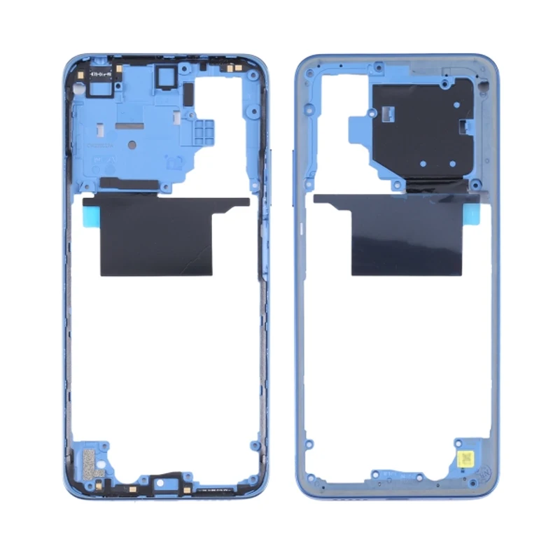 Enhance your Xiaomi Poco M4 Pro 4G with this original replacement middle frame housing. Crafted from durable plastic, it offers a sleek, minimalist design with softly rounded edges for a comfortable grip and seamless integration. The exterior features a smooth, uniform finish with a slightly textured surface that adds subtle visual appeal, ensuring your device looks modern and sophisticated. The interior side of the frame is matte black with precise cutouts, compartments, and mounting points, ensuring internal components are held securely and align perfectly. Whether you're replacing a damaged part or customizing your device, this faceplate back housing is designed for a perfect fit, maintaining the structural integrity and aesthetic appeal of your Poco M4 Pro 4G.