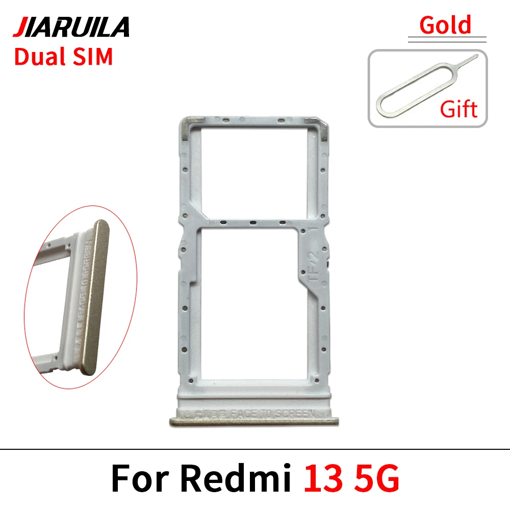 Enhance your Xiaomi Redmi 13 with this high-quality SIM card tray and micro SD card reader holder. Designed specifically for Xiaomi Redmi 13 4G, 5G, and 13C models, this replacement part ensures seamless functionality and reliable connectivity. Imagine effortlessly inserting your SIM card or micro SD card, knowing it will stay securely in place and work perfectly every time. Crafted from durable materials, it offers a perfect fit and easy installation. Whether you're repairing a device or customizing your phone, this essential component keeps your Xiaomi Redmi 13 operating smoothly. Trust this genuine replacement to restore full access to your network and storage, bringing convenience right to your fingertips.