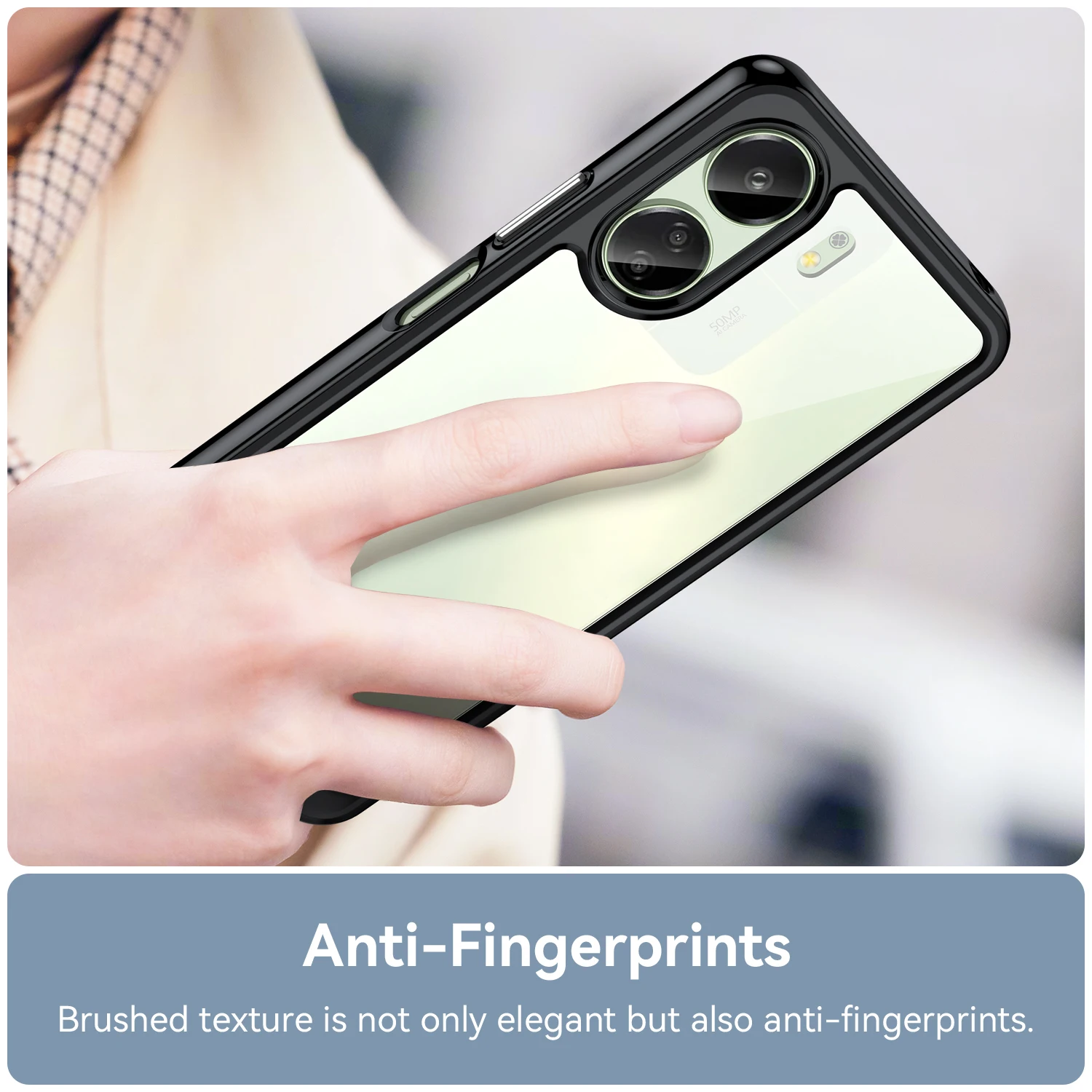 Imagine your Xiaomi Redmi 13C beautifully preserved in this sleek protective case. Crafted from high-quality matte translucent PMMA combined with soft TPU, it offers an elegant yet durable shield. The textured line design on the back enhances grip and adds a contemporary touch, making your phone stand out with subtle style. Slightly raised edges ensure your screen and camera are protected from scratches and drops, while reinforced bumpers absorb shocks effectively. The case's anti-scratch, anti-fingerprint, and dustproof features keep your device looking pristine. Available in black, clear, gray, lake blue, and light blue, this cover complements any style, whether casual or professional, providing a seamless blend of protection and sophistication.