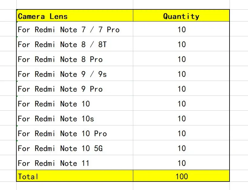 - Contains 100 high-quality glass rear camera lenses compatible with multiple Xiaomi Redmi models for extensive replacement options.