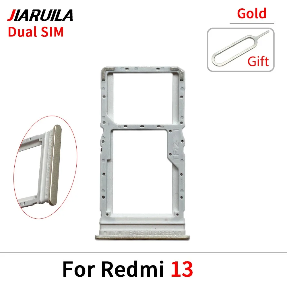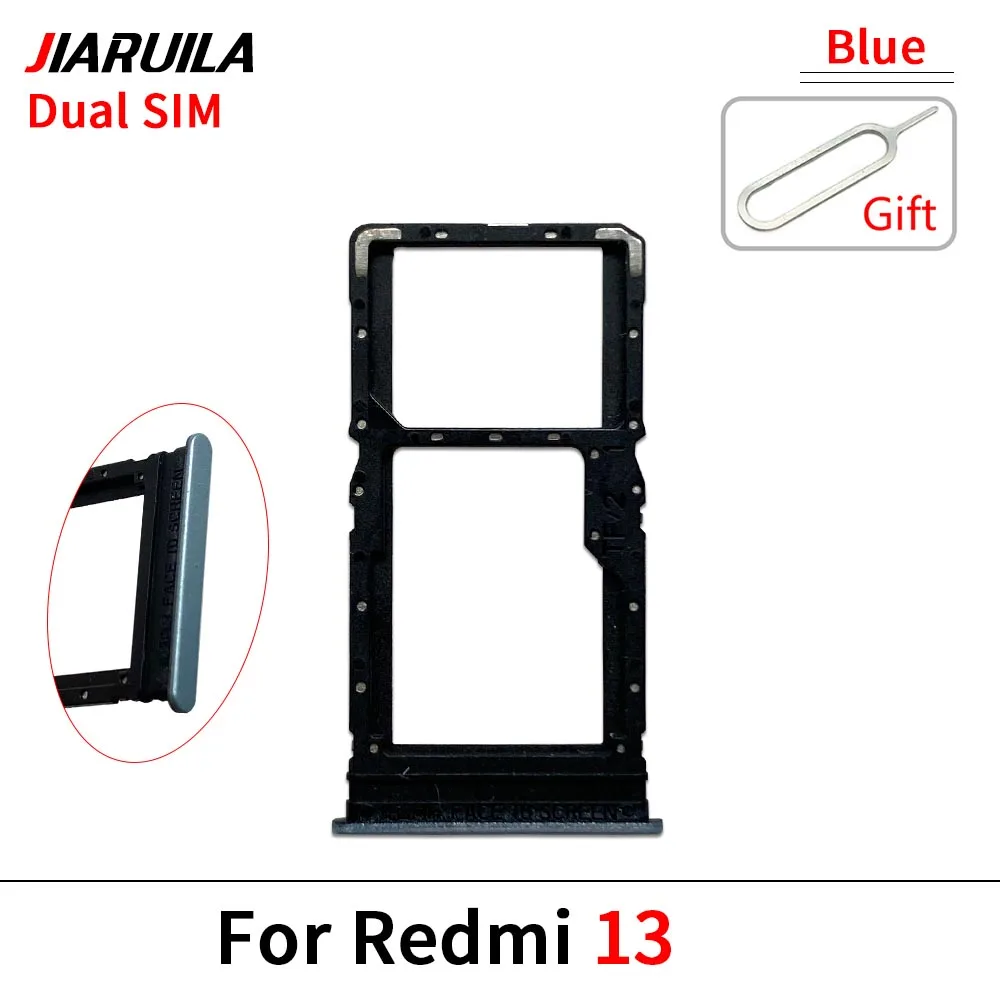 Enhance your Xiaomi Redmi device with this precisely designed SIM card and SD card tray holder adapter. Crafted in a sleek, rectangular bar shape, it offers a modern, minimalistic aesthetic that seamlessly blends with your device's look. Available in multiple colors—black, blue, silver, green, and gold—each tailored to specific models such as Redmi 12, 12C, 13, 13C, and 14C, ensuring a perfect fit. The tray features a matte surface with metallic accents, which add a subtle touch of sophistication. Its compact design with small cutouts ensures easy handling and secure placement of your cards, providing both style and functionality. This essential replacement part helps maintain optimal device performance while giving your Xiaomi Redmi a customized touch.