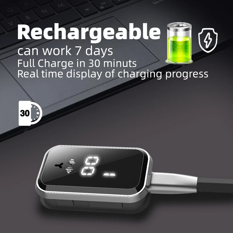 - Rechargeable via USB with a battery life of up to 150 hours.