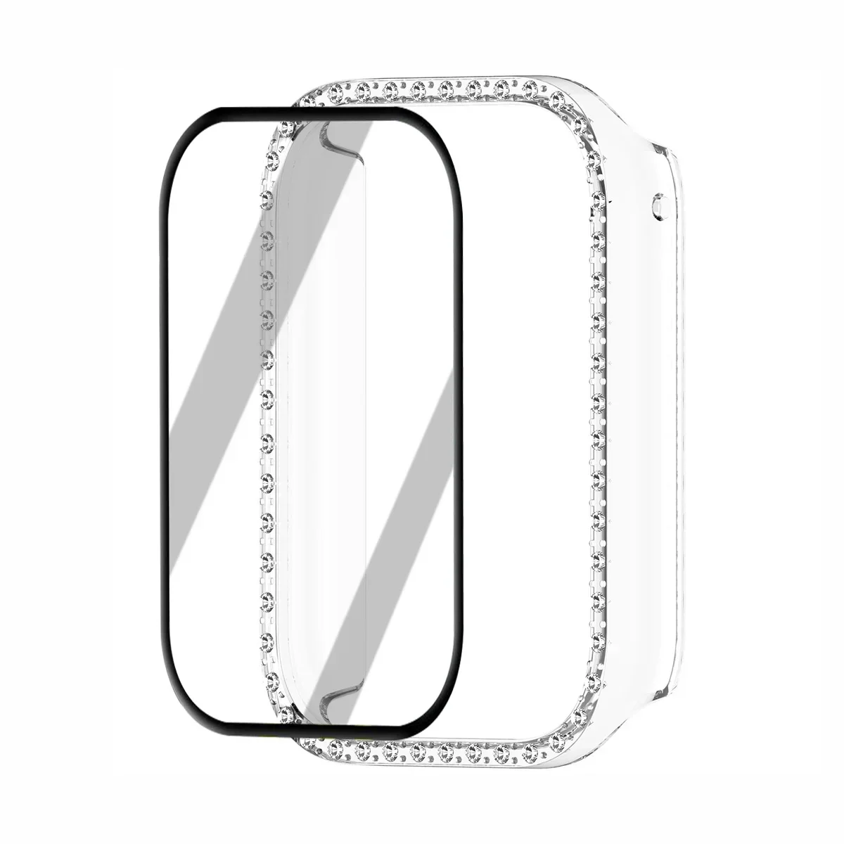 Enhance your Xiaomi Watch 8 Pro or 9 Pro with this stunning protective accessory set. Featuring a sleek, rectangular PC case adorned with sparkling rhinestones, it offers a glamorous touch while safeguarding your smartwatch screen. The included composite membrane film, with its diamond cover, provides durable protection against scratches and impacts. Designed for easy installation, this set combines fashion and function, allowing you to personalize your watch with interchangeable metallic-colored frames in silver, black, rose gold, copper, or pearl-white. Perfect for those who want a luxurious look without compromising on protection, making your Xiaomi smartwatch stand out while keeping it safe from daily wear and tear.