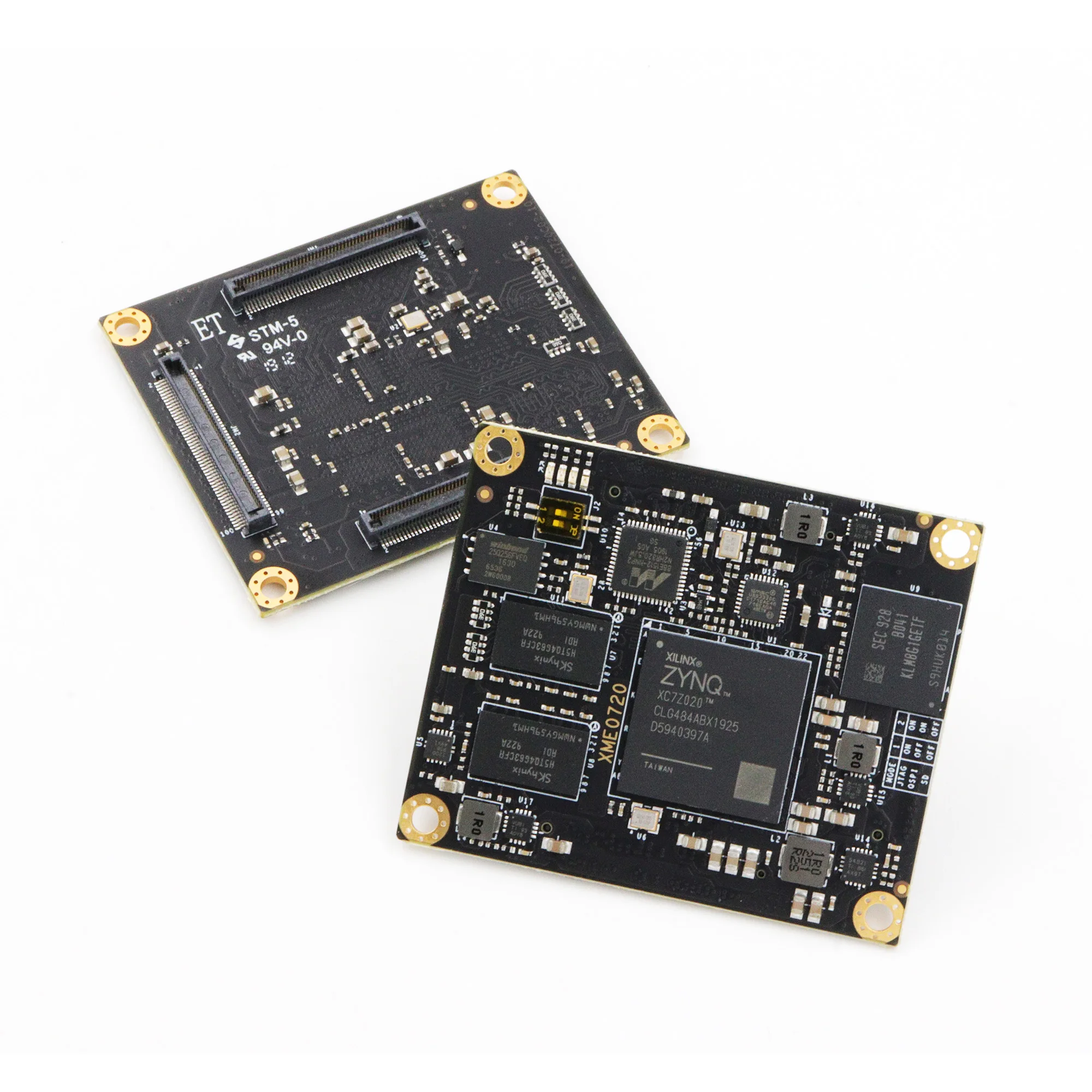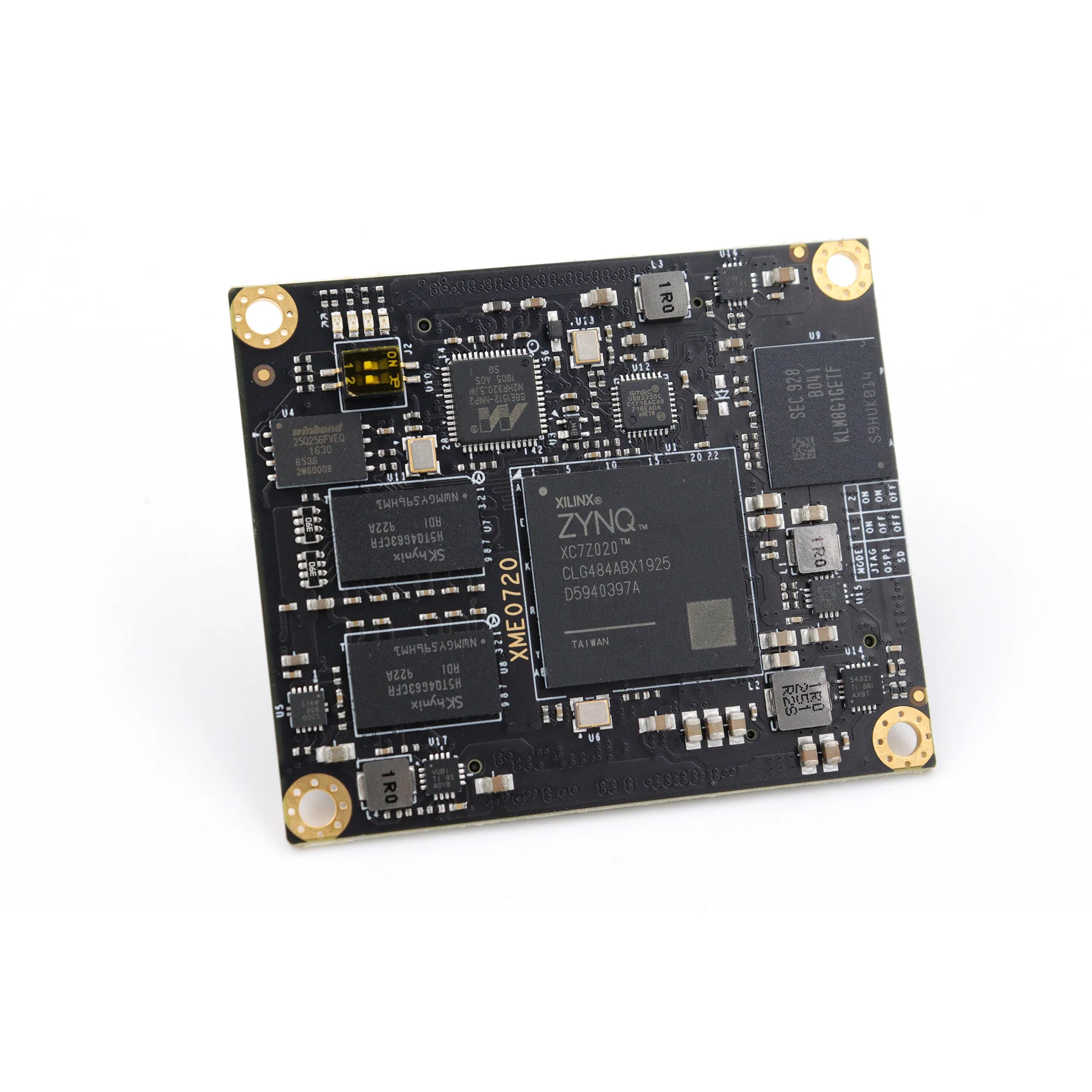 Experience superior performance with this industrial-grade FPGA development board featuring a Xilinx Zynq Zynq XC7Z020 SoC with an ARM Cortex-A9 processor core. Its sleek black matte surface is complemented by metallic gold and silver accents, creating a sophisticated and organized aesthetic. The compact square design includes a prominent central FPGA chip with crisp white labeling, surrounded by rectangular memory chips, surface-mounted components, and a yellow switch for easy control. Gold-plated mounting holes enhance durability and add a refined look. Built for embedded and high-reliability applications, this board offers robust performance, with specifications tailored for industrial, demanding projects, ensuring long-term stability and precision in your designs.