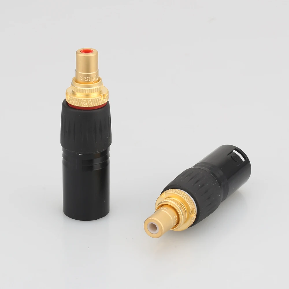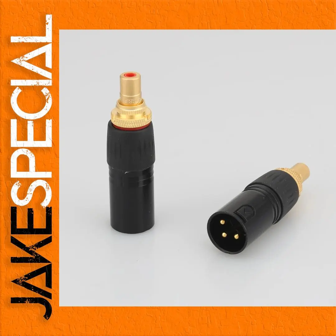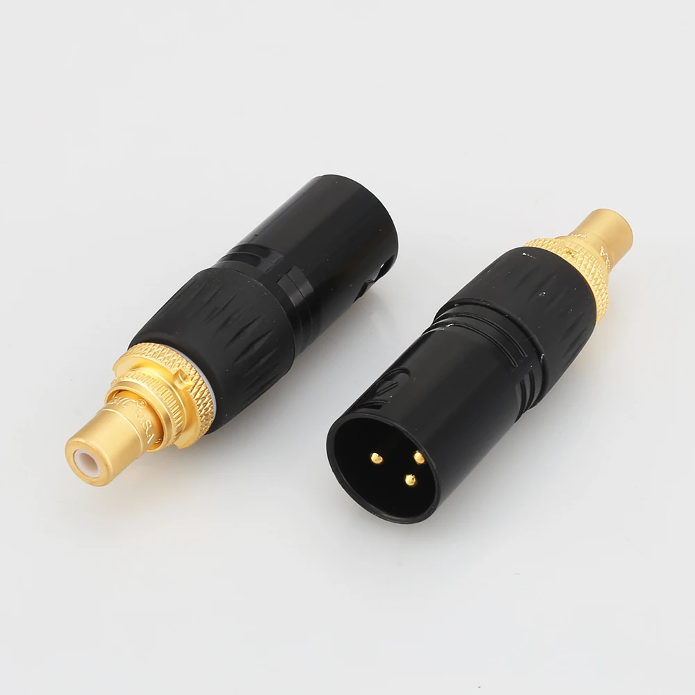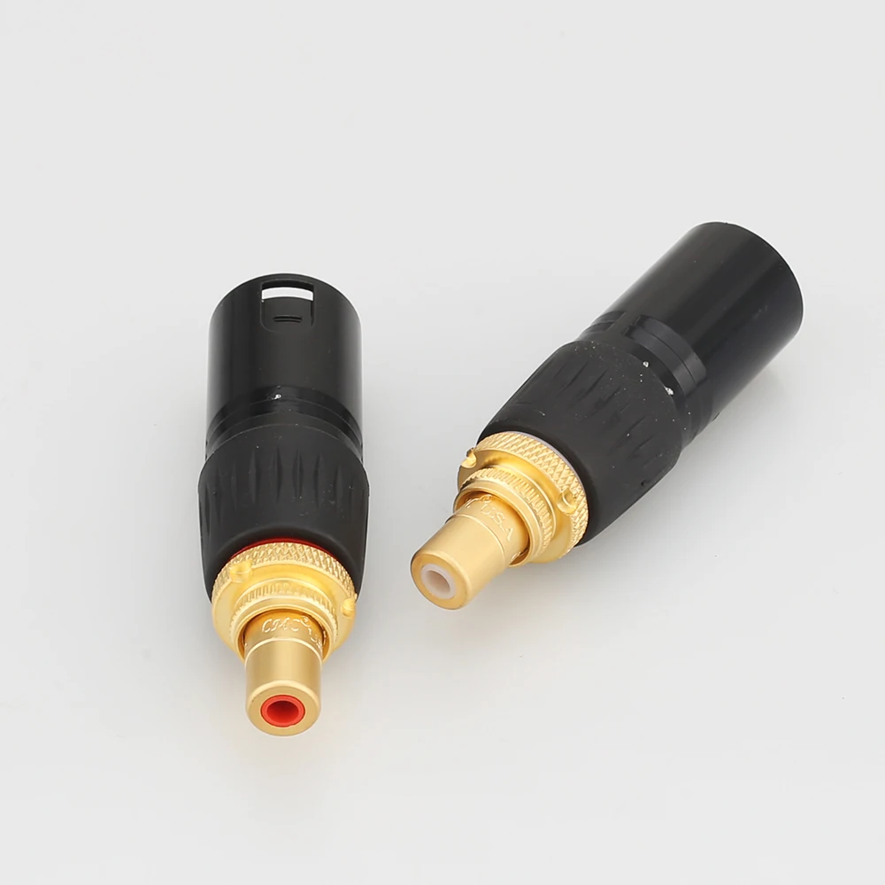 Experience superior audio connectivity with this set of professional-grade XLR to RCA adapters, meticulously handcrafted for high-fidelity sound systems. Designed with precision, these adapters feature clean black cylindrical bodies complemented by polished gold-plated connectors and brass pins, ensuring optimal durability and excellent conductivity. The gold plating prevents corrosion, making them ideal for professional audio setups that demand high reliability. With a length of 66mm for the male units and 69mm for the female units, these adapters are compact yet robust. Their sleek, minimalistic design guarantees seamless integration into any high-end audio environment, providing you with a secure and high-quality connection every time you need it.