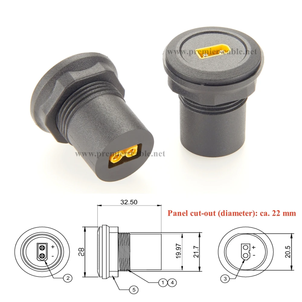 Keys features of the this XT30 Round Panel Mount Adapter