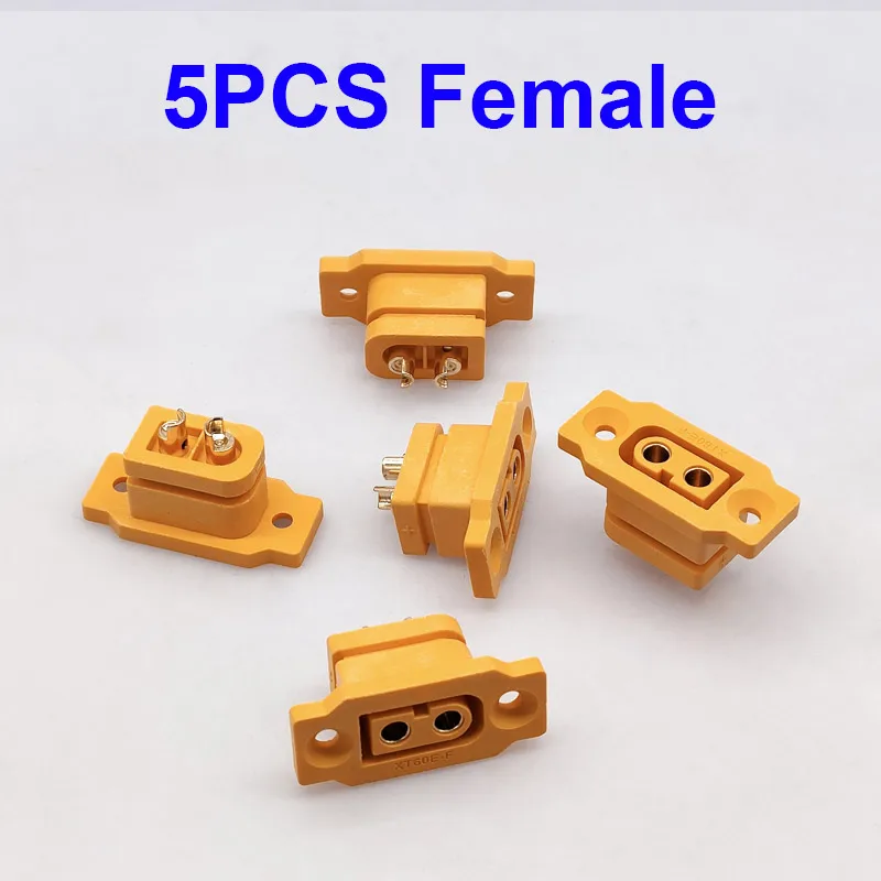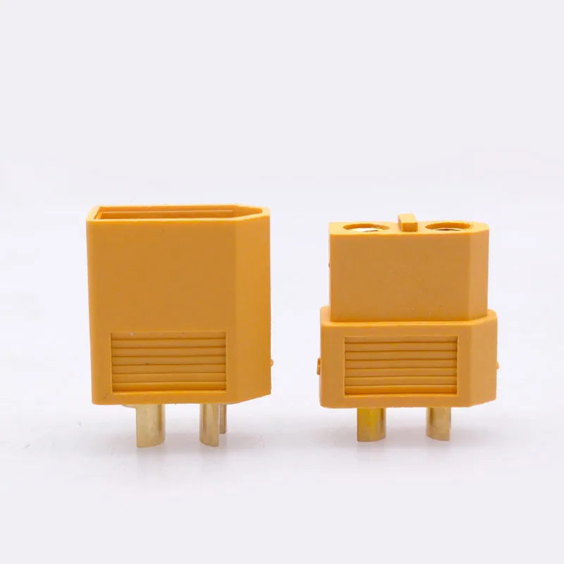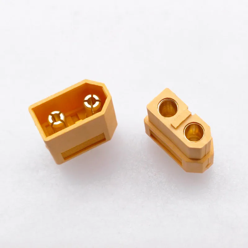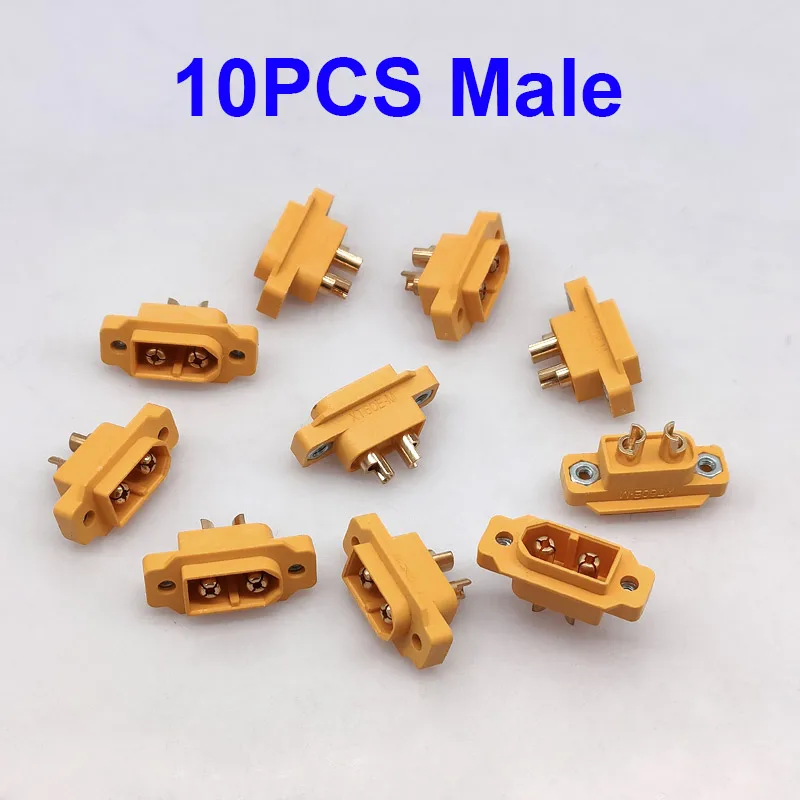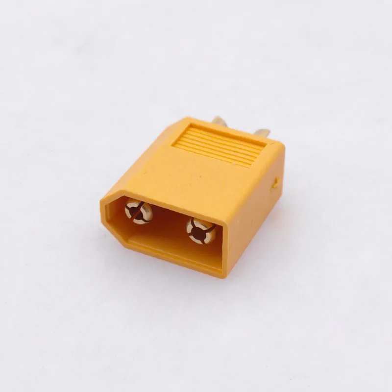 Experience seamless electrical connections with this high-quality, mountable XT60 male plug designed specifically for model aircraft power systems. Crafted from durable plastic with a bright yellow finish, it features a sleek, rectangular shape with textured surfaces for secure grip and easy handling. The shiny, cylindrical metal pins protrude from one end, ensuring excellent conductivity and secure connections. Ideal for upgrading or building electrical systems, these connectors allow you to enjoy a dependable power supply for your aircraft projects. The set includes a mix of male and female connectors, all manufactured with precision for fit and function. Trust this product to provide lasting performance and safe, reliable connections for your electronic devices.