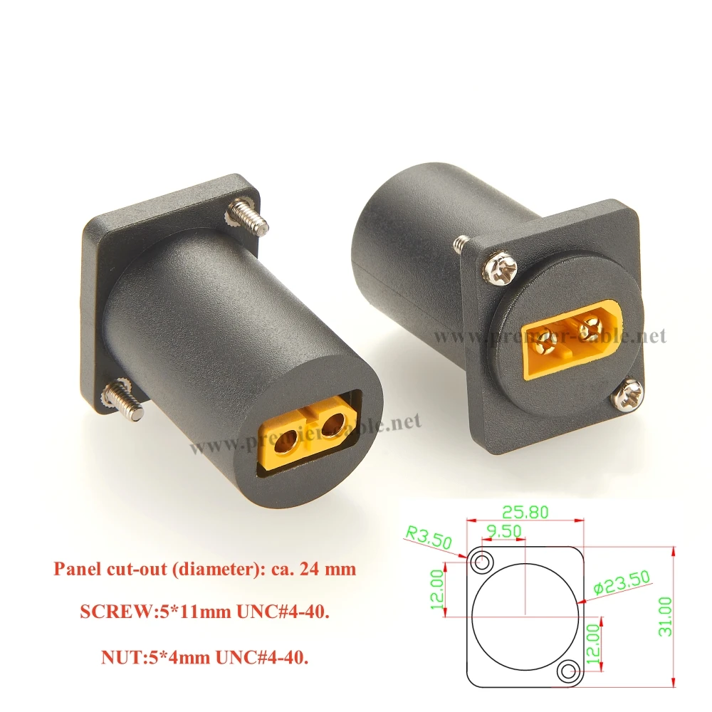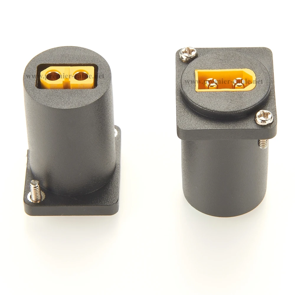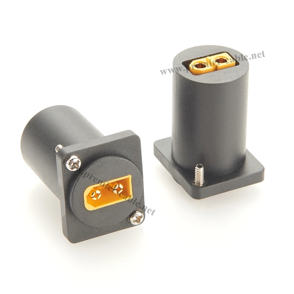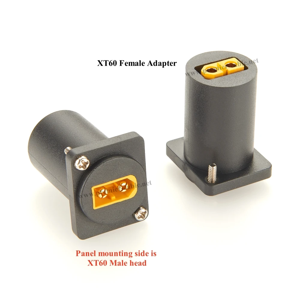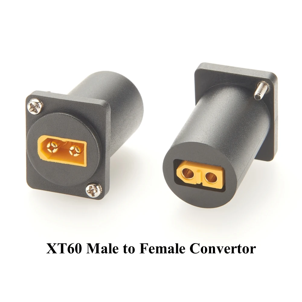 Imagine seamlessly connecting your solar panels, RC models, or portable power systems with this versatile XT60 male to female converter. Crafted with precision, its black textured plastic housing offers durability and a professional look, while the bright yellow connectors ensure easy identification and quick installation. The compact cylindrical design with square mounting plates makes it ideal for panel mounting, allowing secure, flush integration into your projects. Thanks to gold-plated contacts, this adapter guarantees excellent conductivity and longevity, even under demanding use. Whether you're setting up a solar generator, powering RC drones, or upgrading your energy storage, this converter provides a dependable and sleek solution for all your connection needs.