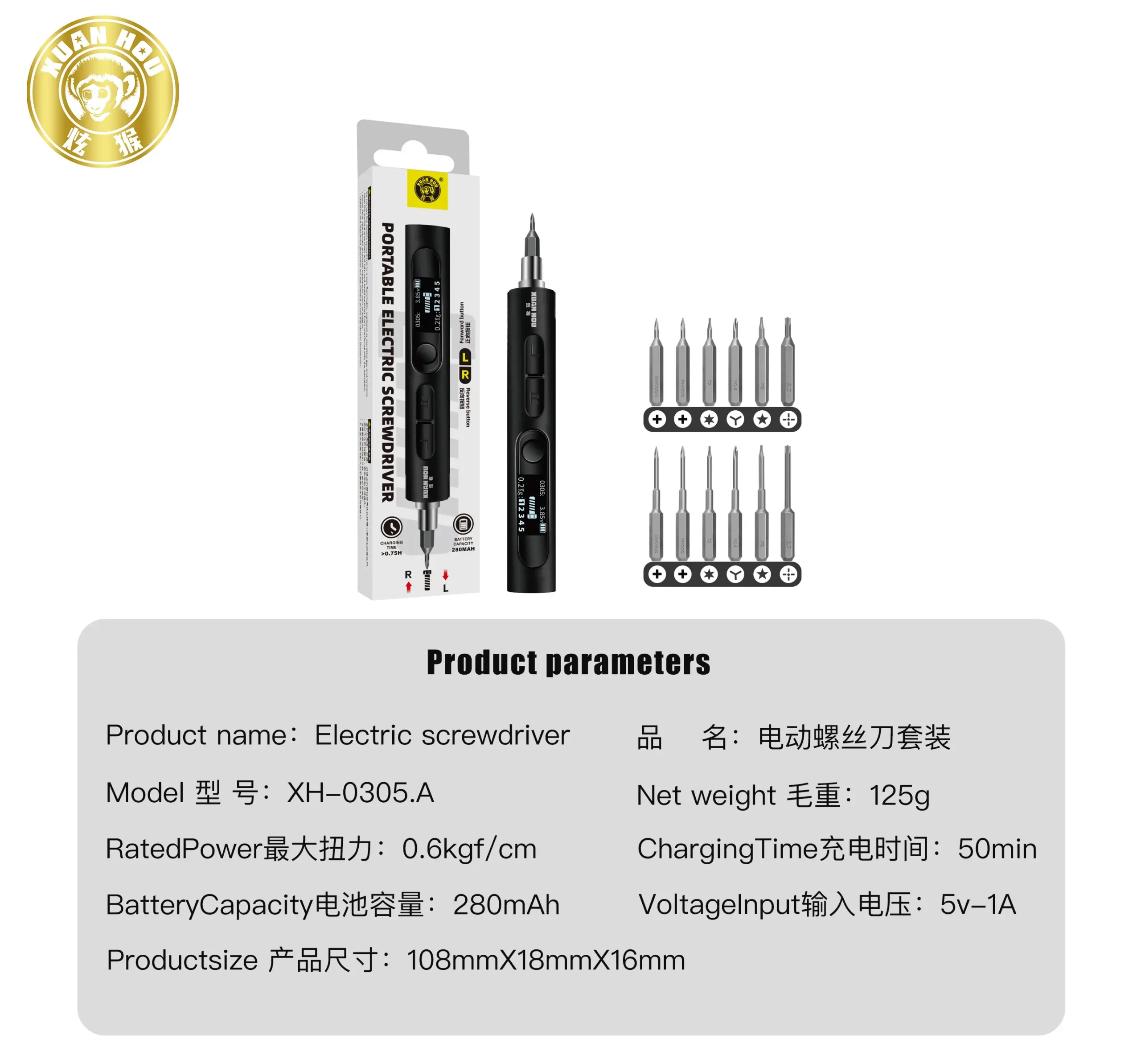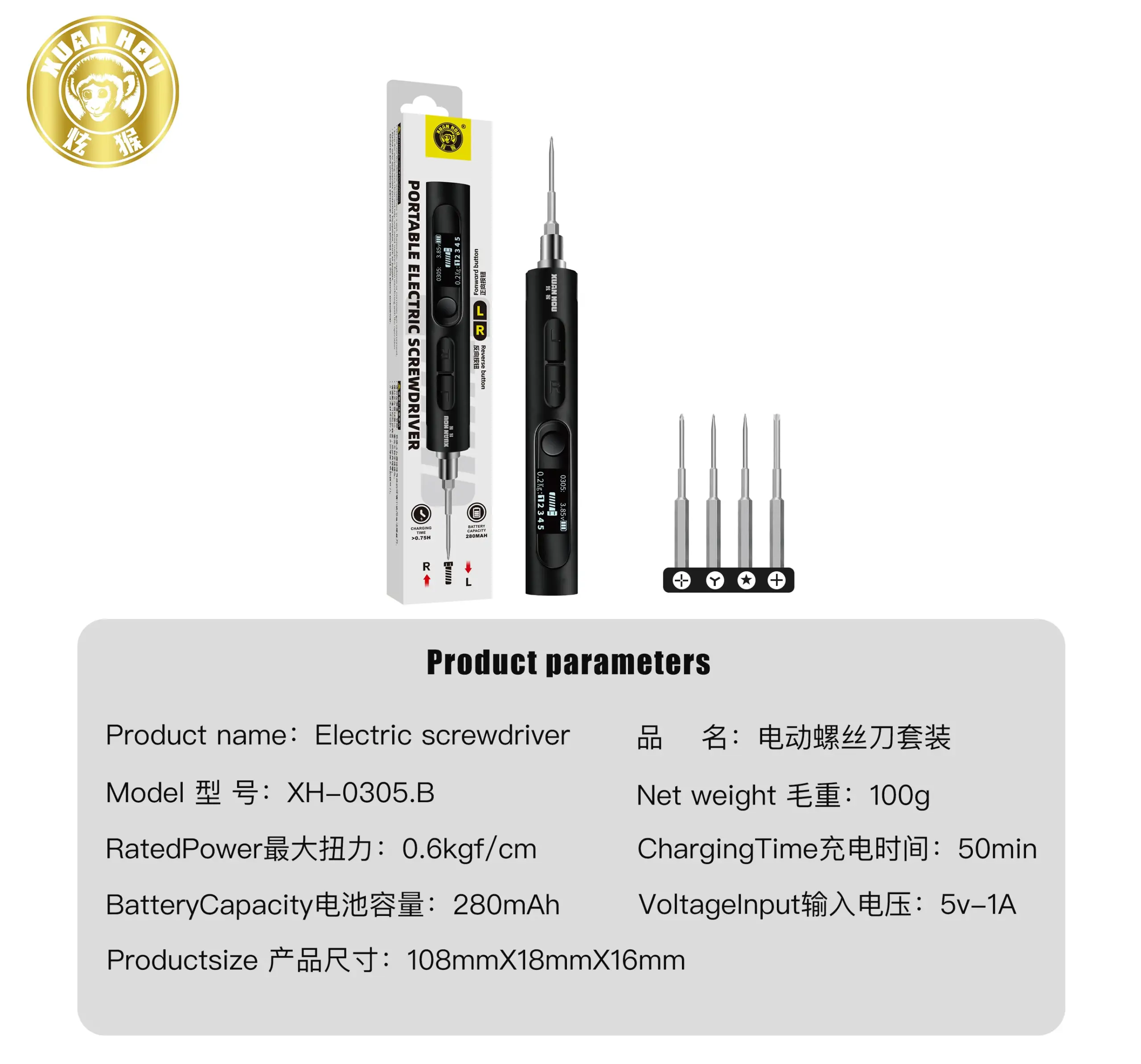 Keys features of the XUANHOU XH-0305 Electric Screwdriver Set