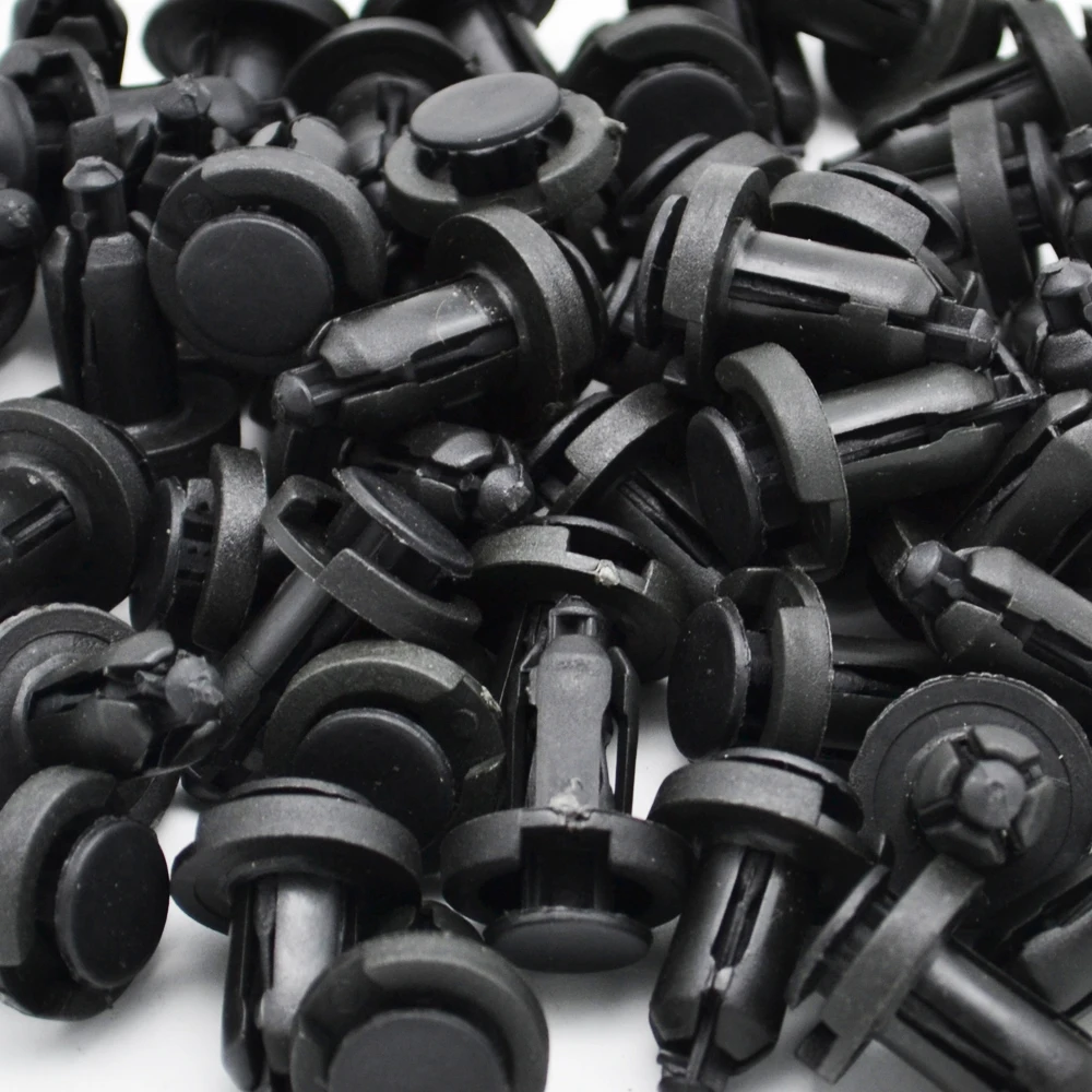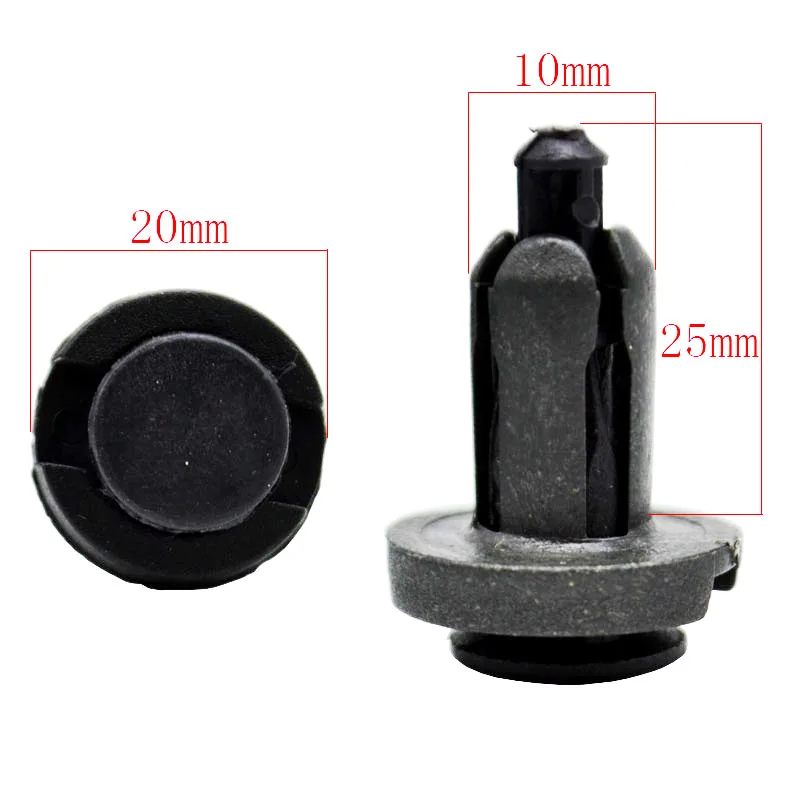 This pack of 50 car fender rivet fastener clips offers a reliable solution for automotive applications, made from durable plastic for long-lasting use. Each clip features a head diameter of 20mm (0.78″) and a stem length of 25mm (0.98″), designed to fit securely in 10mm (0.39″) diameter holes. Ideal for universal use, these push-in type clips are specifically compatible with Honda and Acura vehicles, perfect for attaching side skirts, bumpers, and other trim elements. With a total weight of 0.1 kg, they ensure easy installation and a sleek, inconspicuous appearance for your vehicle.