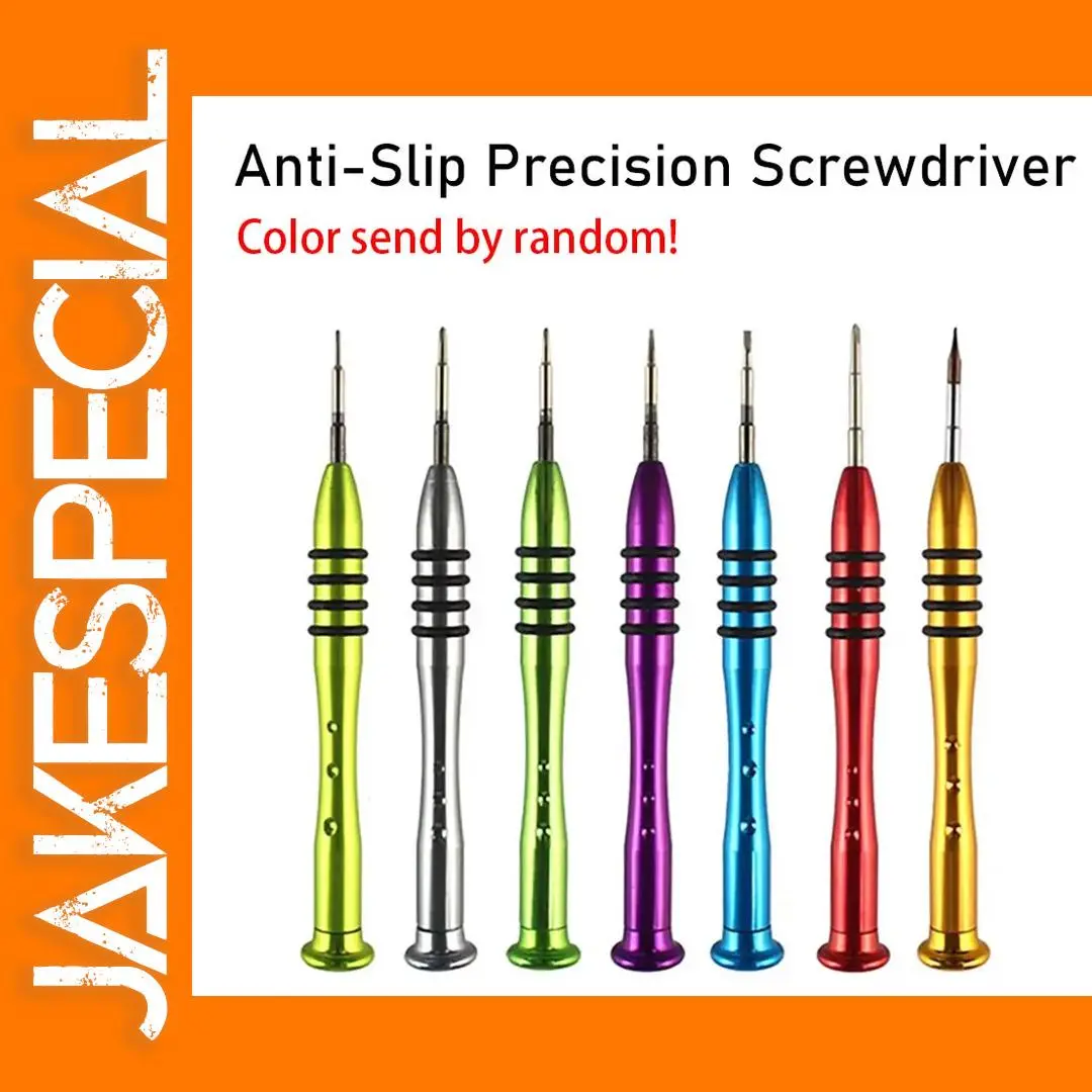 Improve your repair skills with this colorful set of seven anti-slip screwdrivers designed for precision tasks. Featuring vibrant handles in lime green, silver, purple, blue, red, and gold, these screwdrivers combine eye-catching aesthetics with ergonomic functionality. Each tool has a tapered metallic handle with three black ridges for a secure grip, ensuring effortless control during delicate repairs. The slim, metallic shafts are made of durable stainless steel or Chrome Vanadium Steel, offering excellent longevity. The tips are finely pointed and vary in shape to suit small screws in electronic devices. Whether you're working on gadgets or small appliances, this set adds style and reliability to your toolkit, making your repairs quick and manageable.