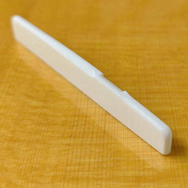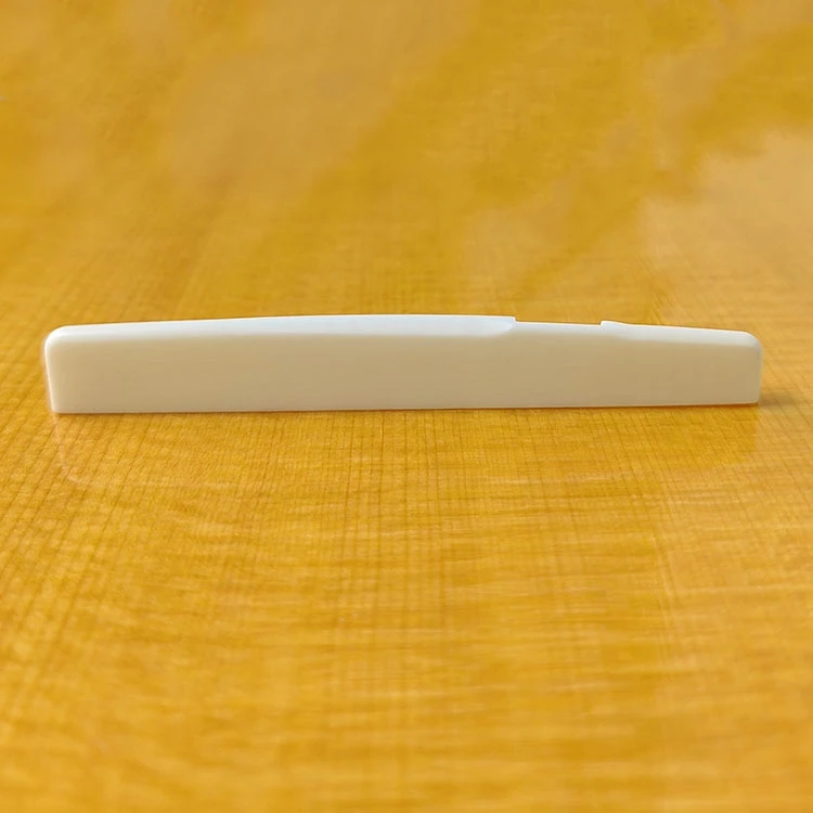 - Rectangular shape with gently rounded edges designed for easy installation and a seamless fit on Yamaha FG bridge slots, ensuring consistent string height and intonation.
