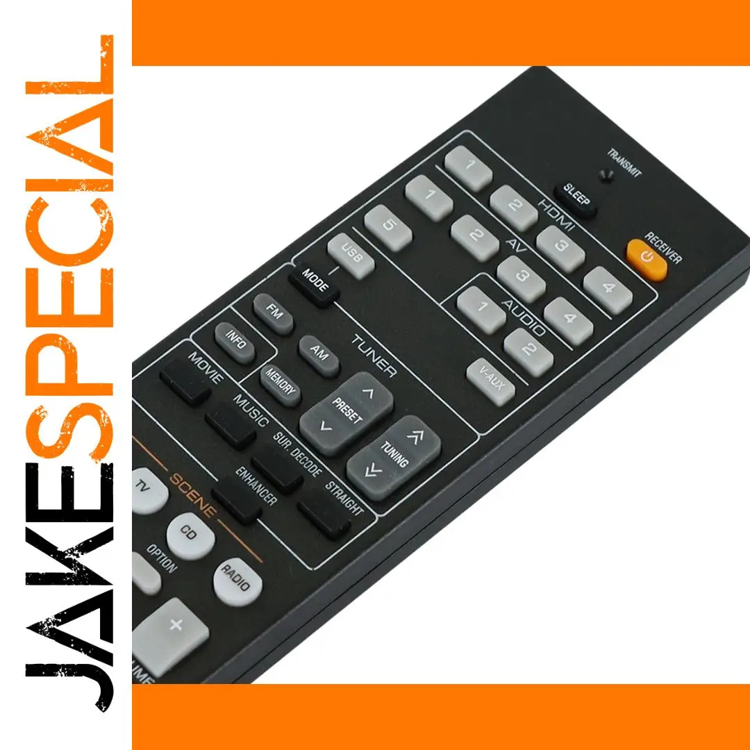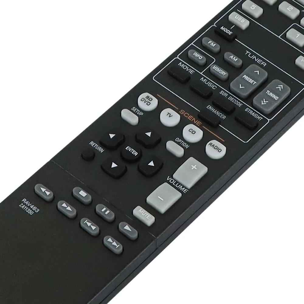 Experience seamless control with this RAV463 remote, specially designed for Yamaha devices such as RX-V375BL, RX-V377, HTR-3066, RAV521, and RAV522. Crafted with a sleek matte black finish, it features a modern rectangular shape with softly rounded edges, offering a minimalist aesthetic. The flat surface hosts an organized layout of gray oval and rectangular buttons, accented by bright orange for key functions, ensuring an intuitive user experience. Utilizing infrared (IR) communication over a single channel, this remote enables effortless operation of your smart TV and audio systems. Its practical design combines style and functionality, making it an essential accessory for Yamaha device enthusiasts.