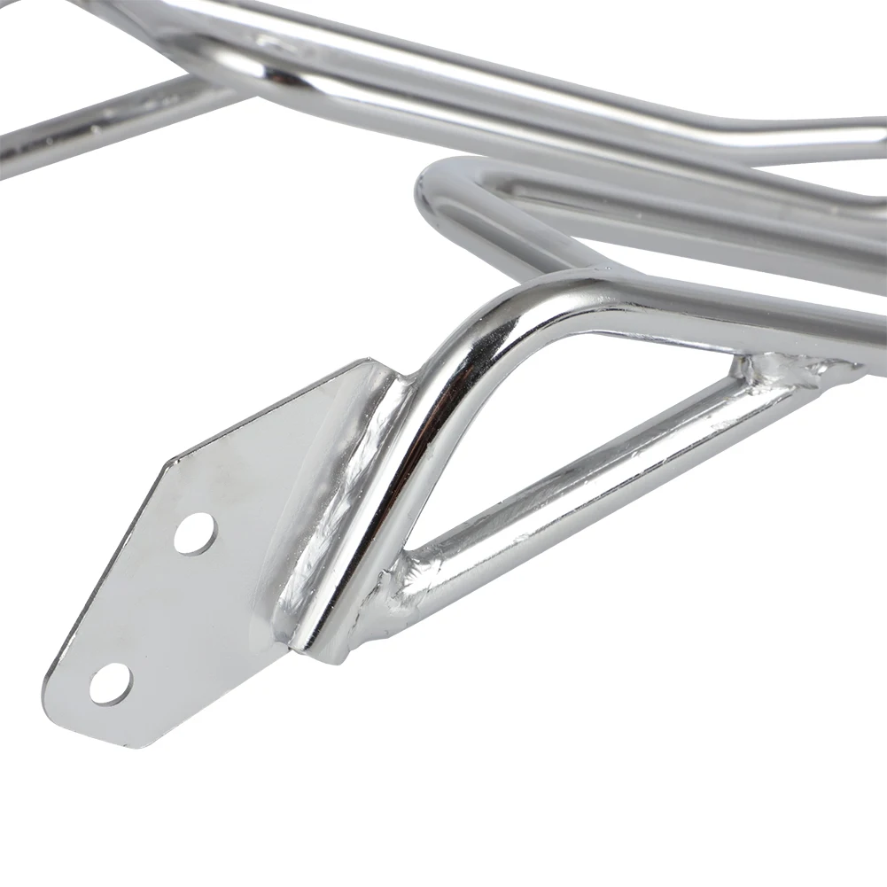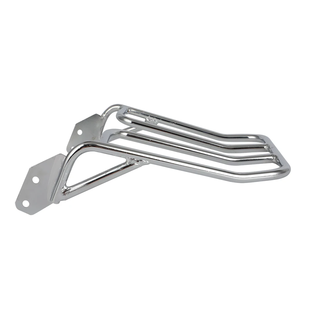Enhance your Yamaha motorcycle with this sleek and durable rear luggage rack, designed to combine practicality and style effortlessly. Made from solid steel with a shiny chrome finish, it offers superior strength and resistance compared to hollow alternatives, ensuring your luggage remains secure. Its open-frame design features smooth, rounded corners for a modern look that complements your bike’s aesthetic. Whether you’re heading out for a long ride or just running errands, this rack adds convenient cargo capacity without compromising your bike’s sleek silhouette. The easy-to-install fastenings and reinforced brackets guarantee a firm, stable fit, providing peace of mind while riding. Bring both style and function to your Yamaha motorcycle today.