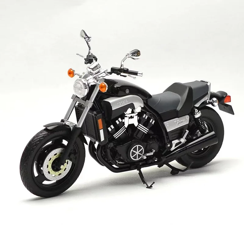 This exquisite 1:12 scale diecast model of the Yamaha Vmax motorcycle is a stunning representation of motorcycle artistry. Offered in three eye-catching color variations – bold red with silver highlights, timeless black and silver, and sleek all-black – this model captures the essence of the original bike. Crafted from alloy and premium plastic, it features chrome accents on the headlights and handlebars, rubber tires with authentic tread patterns, and incredible attention to detail. Perfect for display, this model is not only an excellent addition to any collection but also a thoughtful gift for motorcycle enthusiasts. Picture yourself showcasing this beauty on your shelf or surprise a loved one with this exceptional piece.
